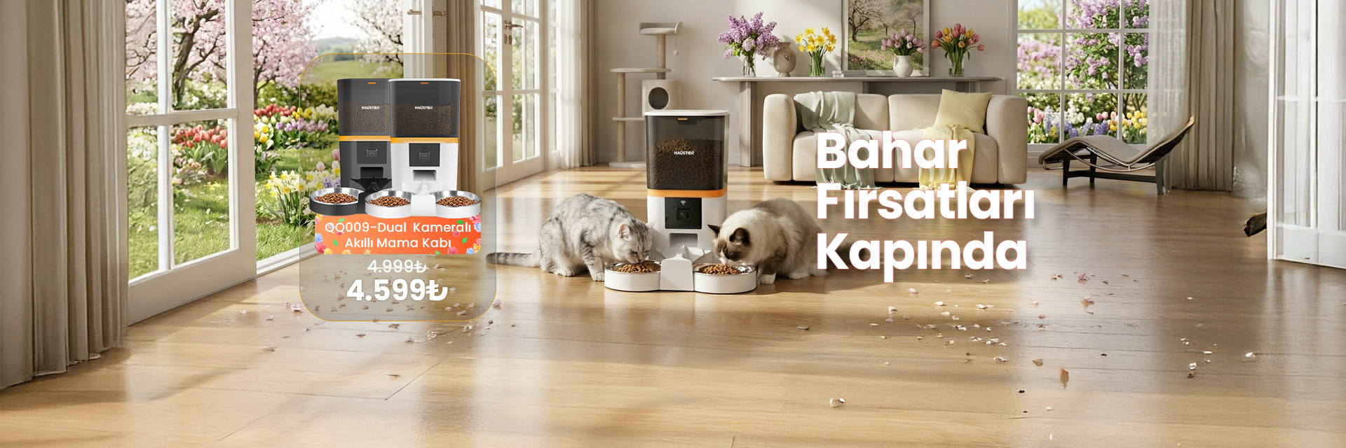 Haustier HST-QQ005 BEYAZ Akıllı Mama Kabı, WF007L BEYAZ Kedi Su Pınarı 2 li Set Haustier Türkiye Garantili