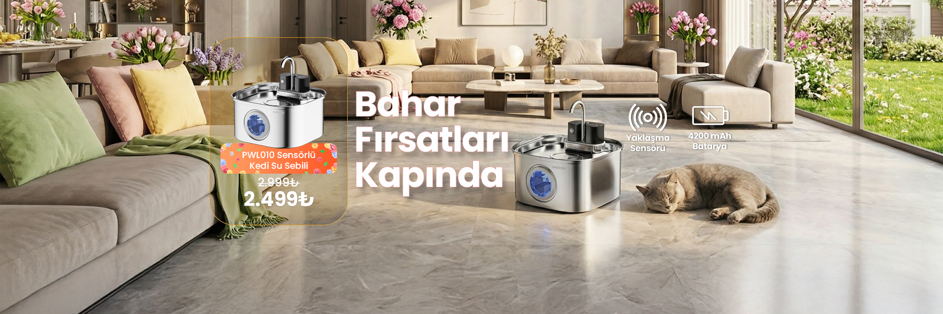 Haustier PWL010 Otomatik Kablosuz Kedi Su Pınarı, Sensörlü , Bataryalı , Ultra Sessiz, Çelik , 3.2Lt Hazne