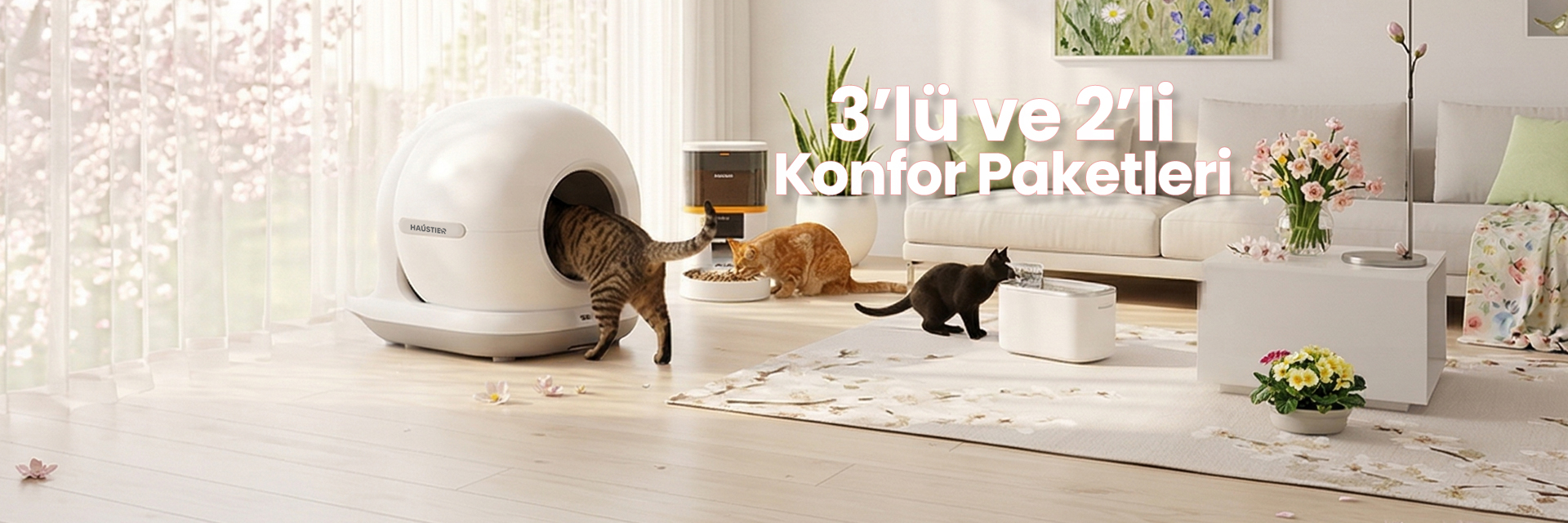 Haustier HST-CB002 Siyah Akıllı Otomatik Kedi Tuvaleti, HST-QQ005 Siyah Akıllı Mama Kabı 2 li Set Haustier Türkiye Garantili