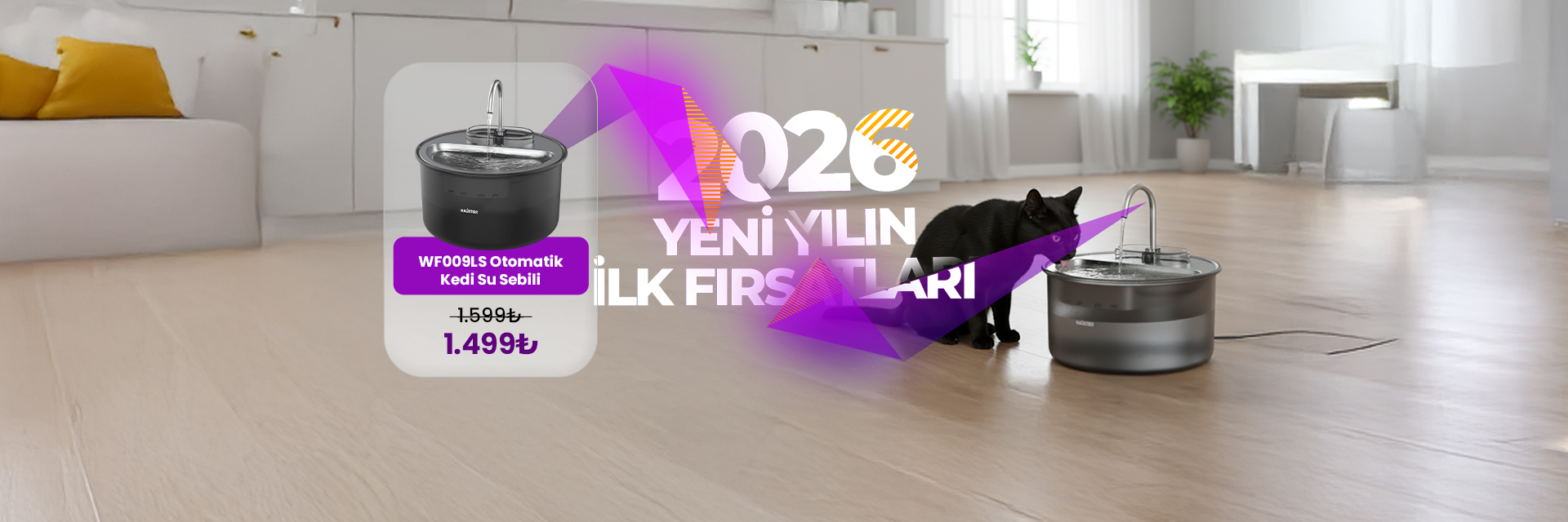 Haustier HST-QQ009 Dual Siyah Akıllı Mama Kabı, HST-WF009L-W Kedi Su Sebili 2 li Set Haustier Türkiye Garantili