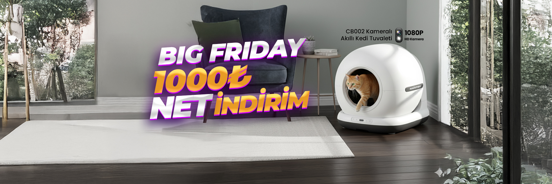 Haustier CB002 Siyah Kameralı Akıllı Otomatik Kedi Tuvaleti, APP ile Uzaktan Kontrol, 72lt Hazne, 7lt Çöp haznesi