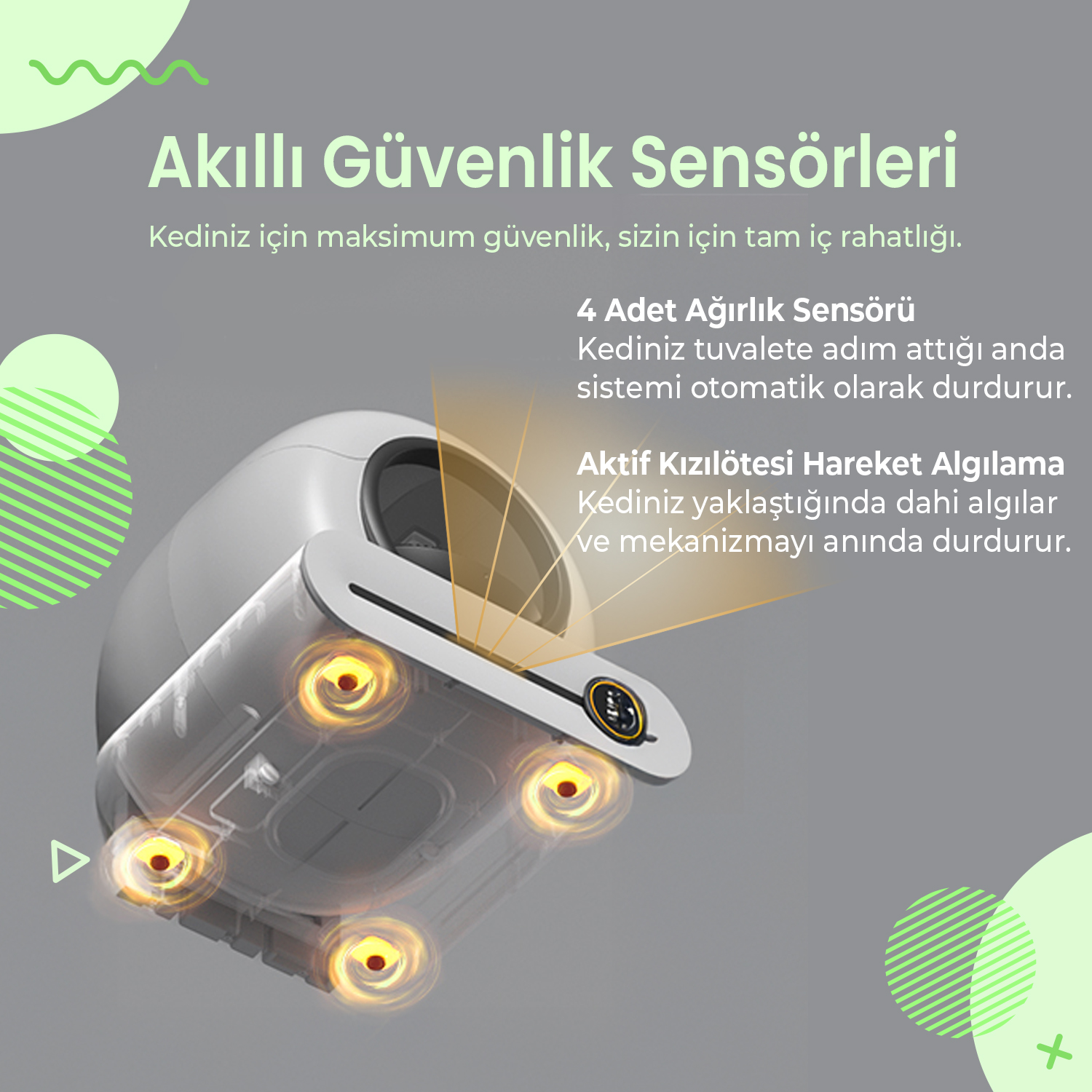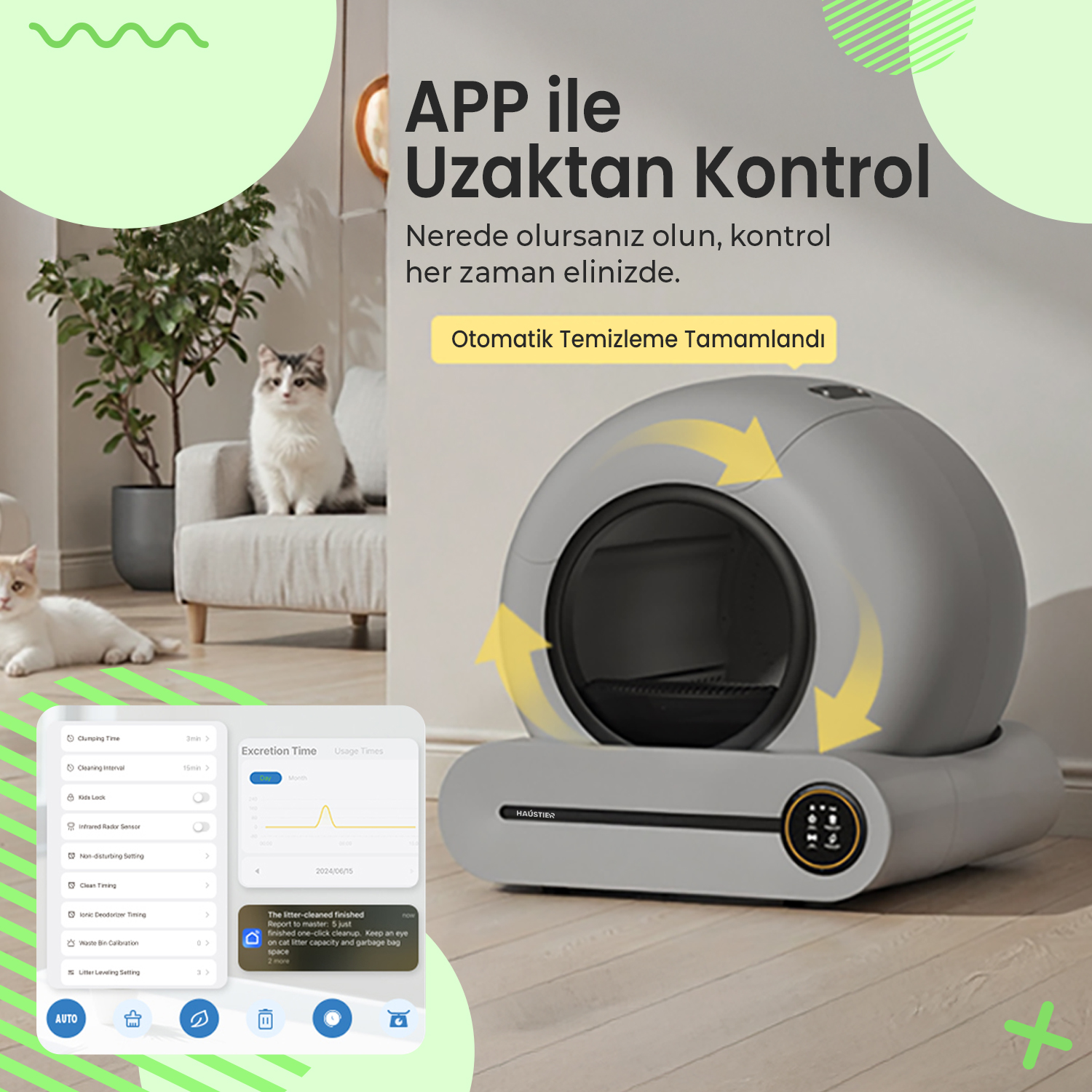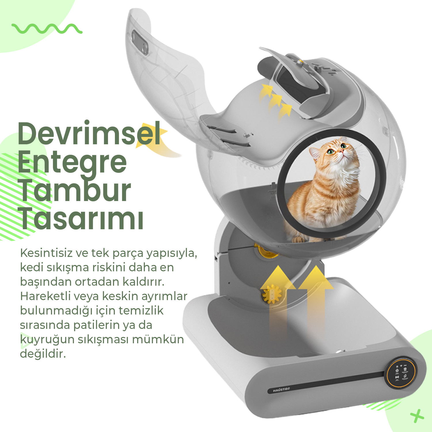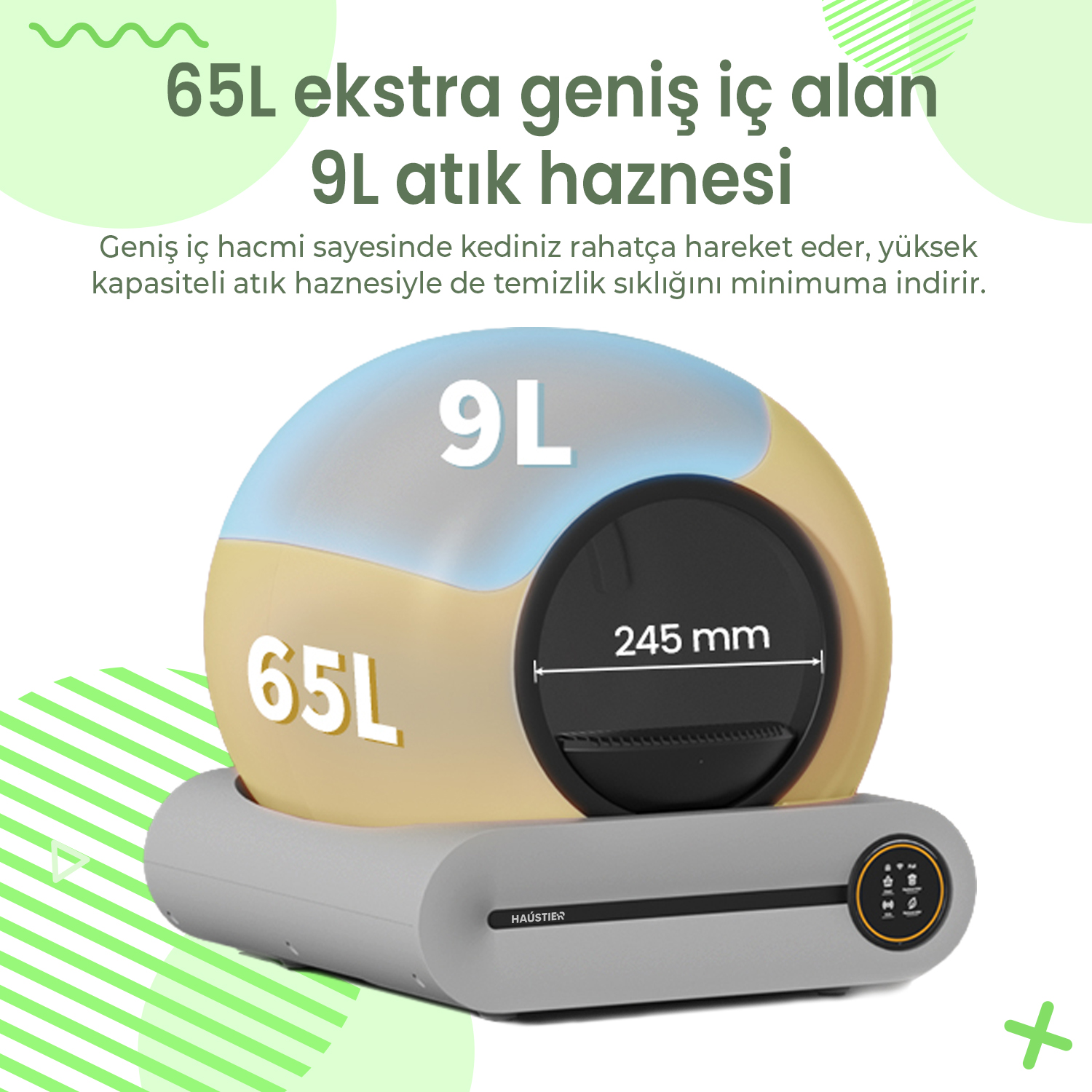 Haustier BF01 Akıllı Otomatik Kedi Tuvaleti, Uzaktan Kontrol, 65lt Hazne, 9lt Çöp haznesi-UV Kötü Koku Temizleme, Ağırlık sensörlü Gri