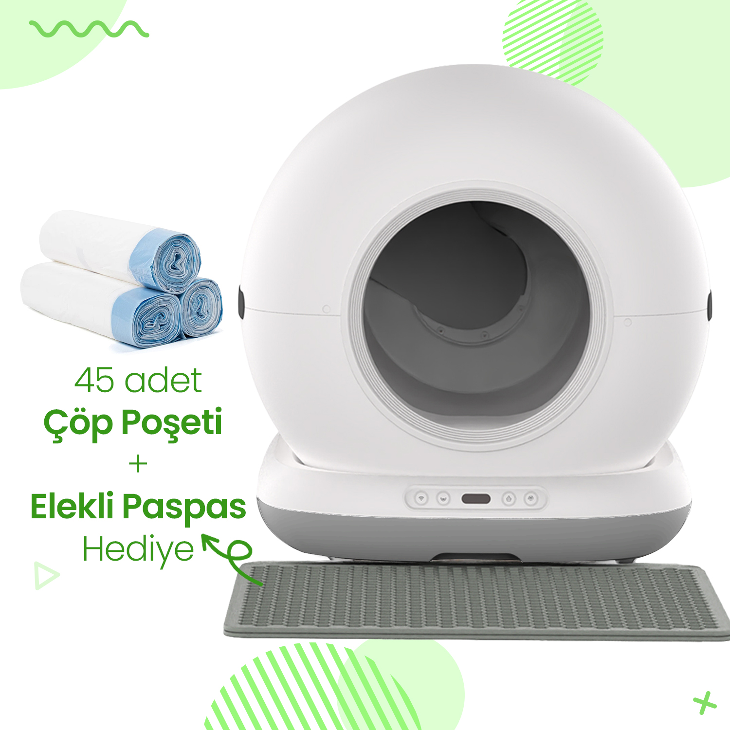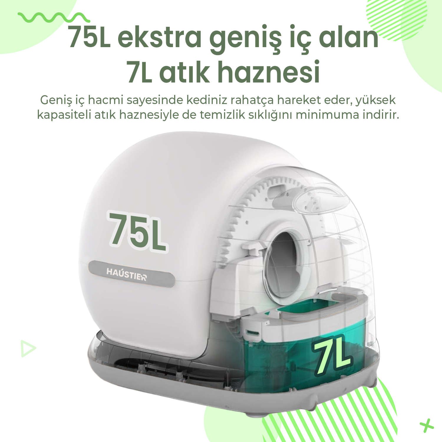 Haustier CB001 Gri Akıllı Otomatik Kedi Tuvaleti, APP ile Uzaktan Kontrol, 75lt Hazne, 7lt çöp haznesi, Ağırlık sensörlü