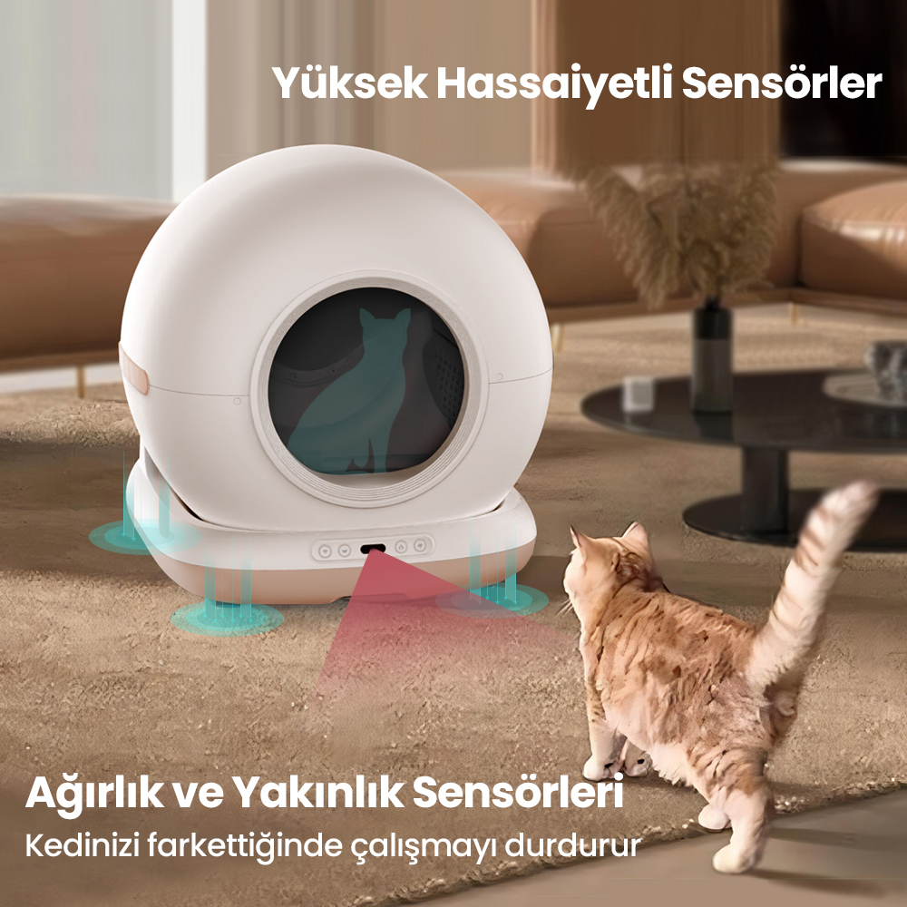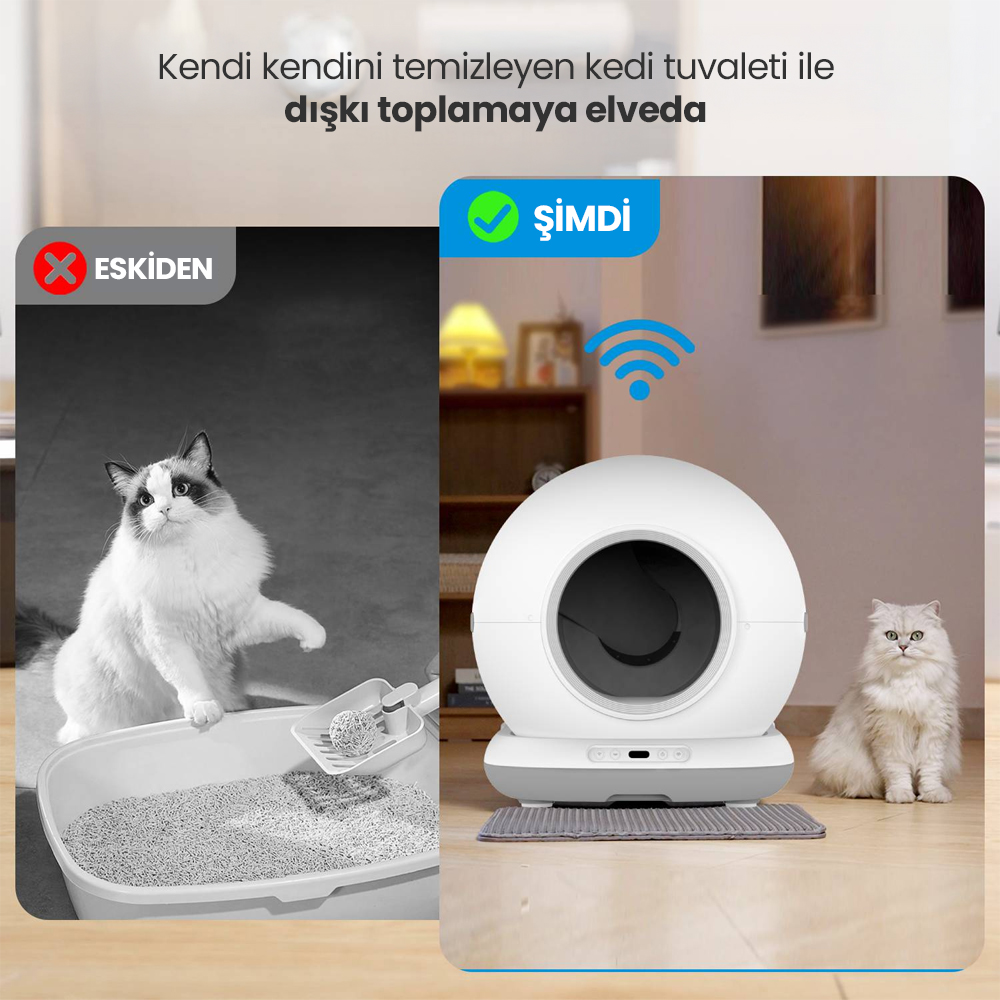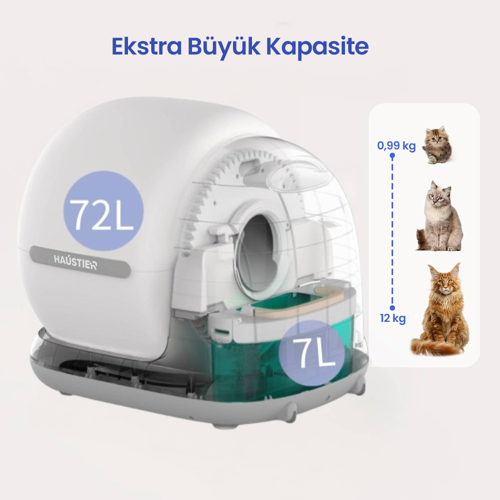 Haustier CB002 KAMERALI Akıllı Otomatik Kedi Tuvaleti, APP ile Kontrol, 72lt Hazne, Ağırlık sensörlü, Elekli Paspas Hediyeli