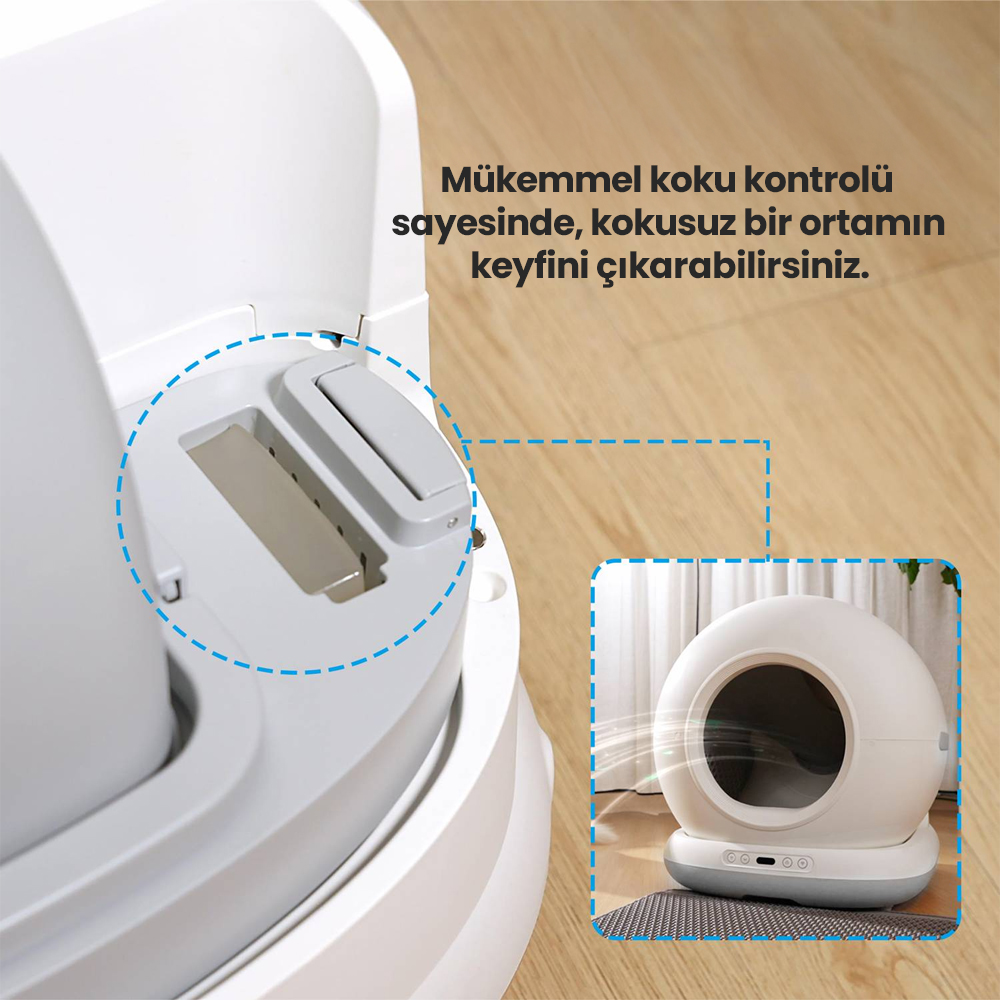 Haustier CB002 Gri Kameralı Akıllı Otomatik Kedi Tuvaleti, APP ile Uzaktan Kontrol, 72lt Hazne, 7lt Çöp haznesi