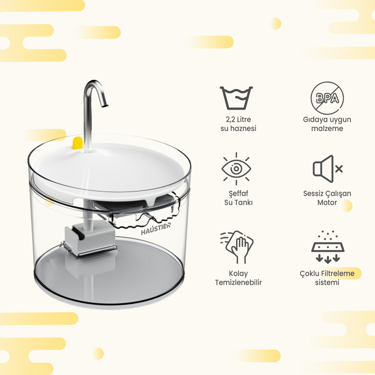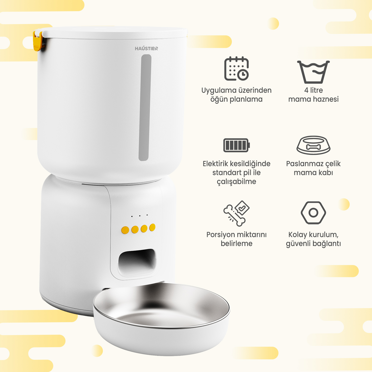 Haustier FW3 BEYAZ Akıllı Mama Kabı, Kedi Su Pınarı Akıllı Beslenme İstasyonu