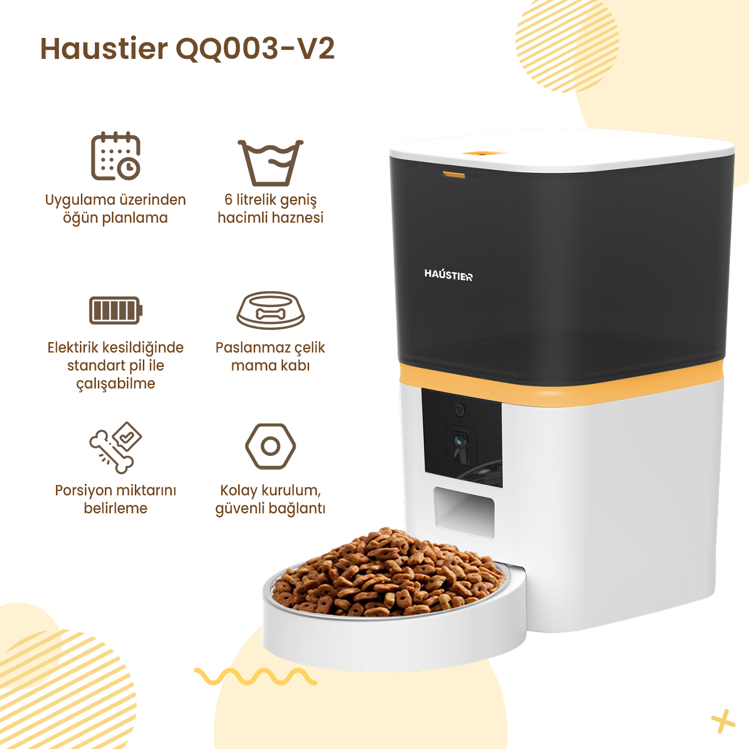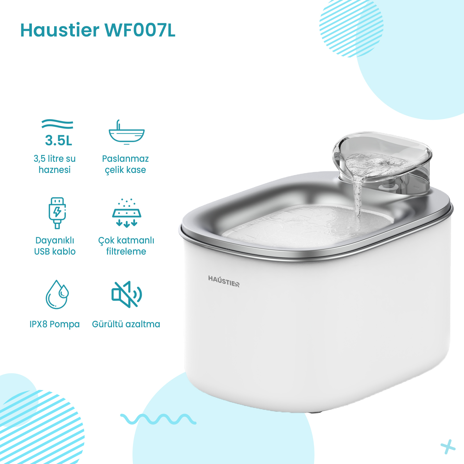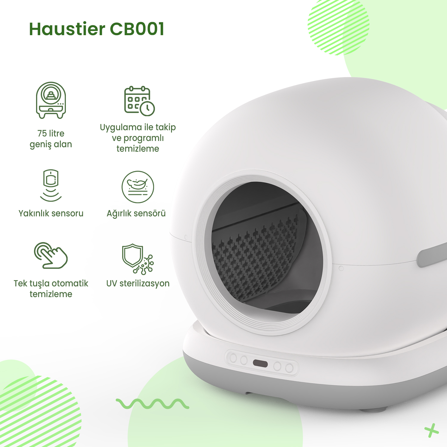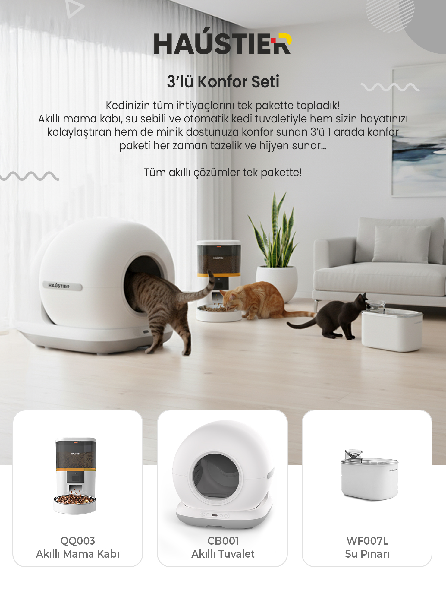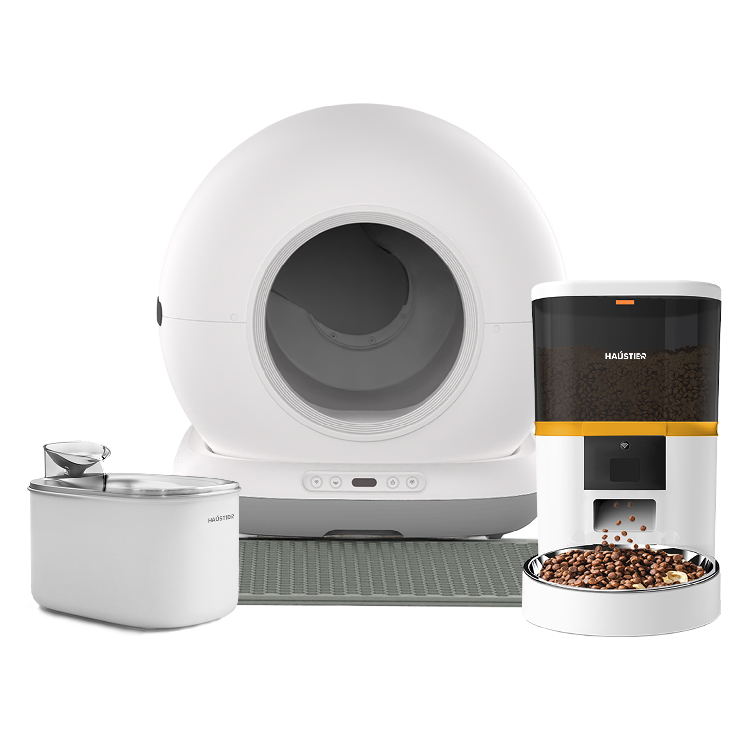 Haustier CB001 Gri Kedi Tuvaleti QQ003 Beyaz Mama Kabı WF007L Beyaz Kedi Suluğu 3 lü Set Haustier Türkiye Garantili