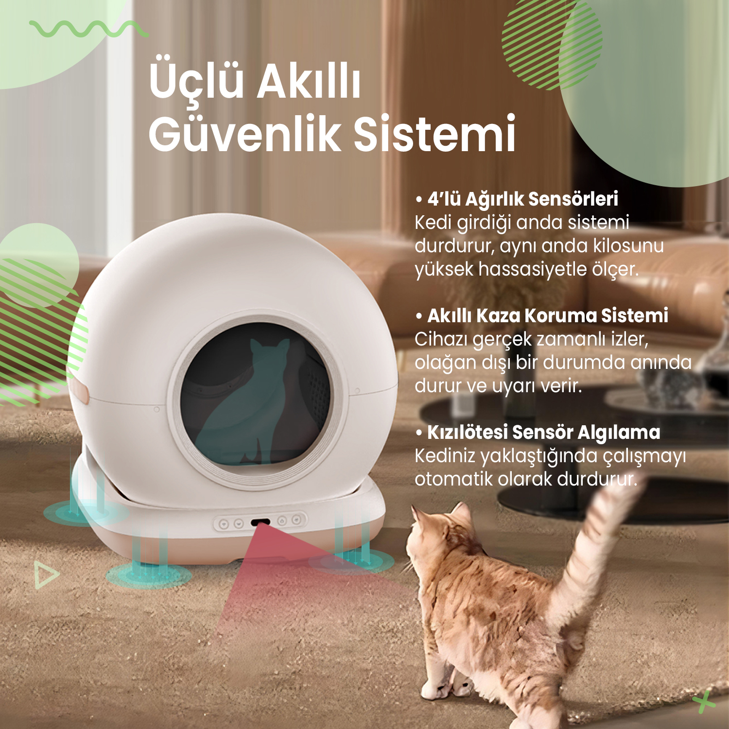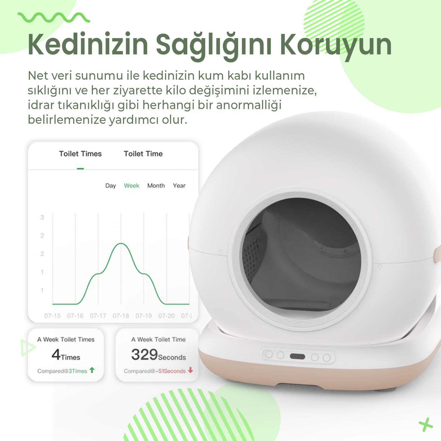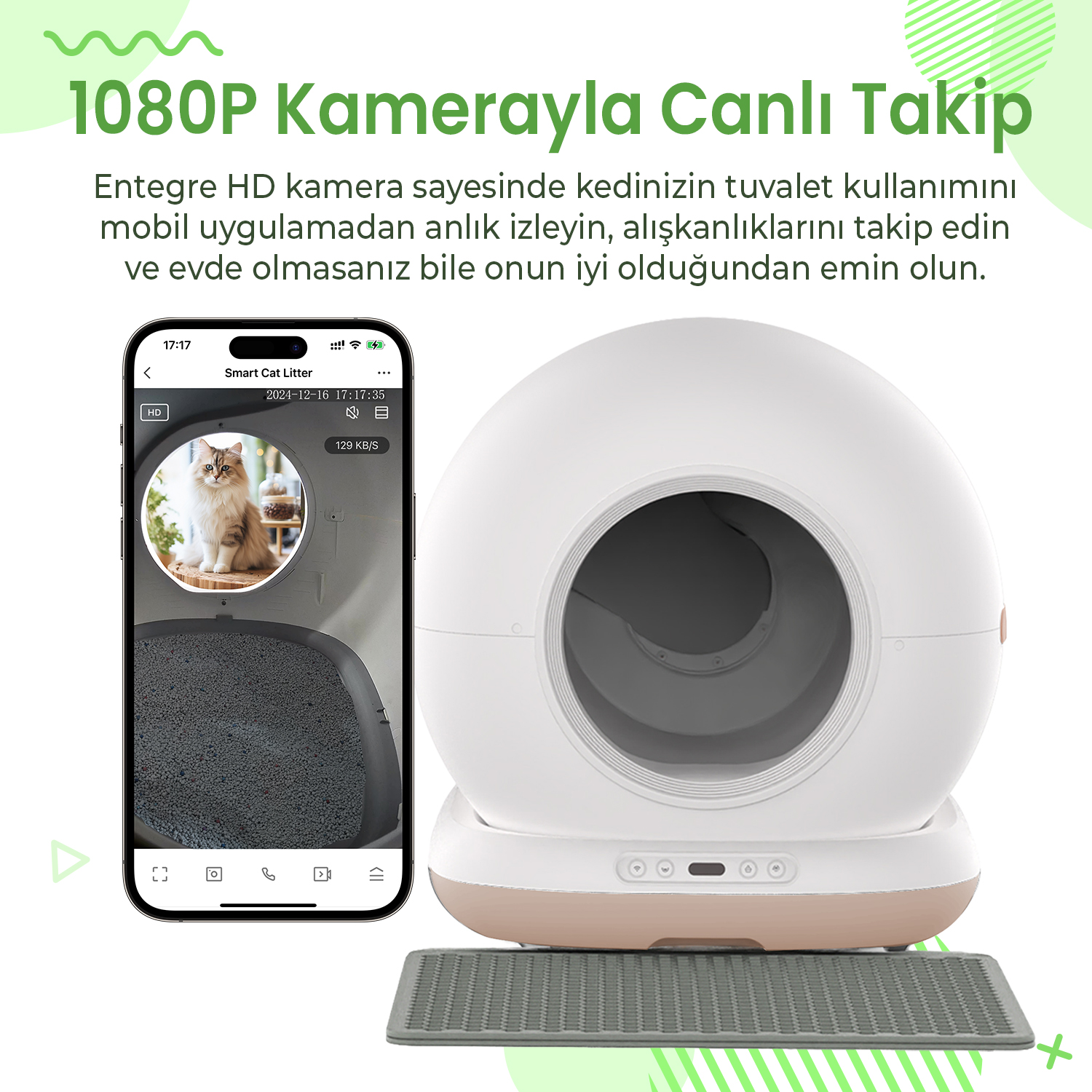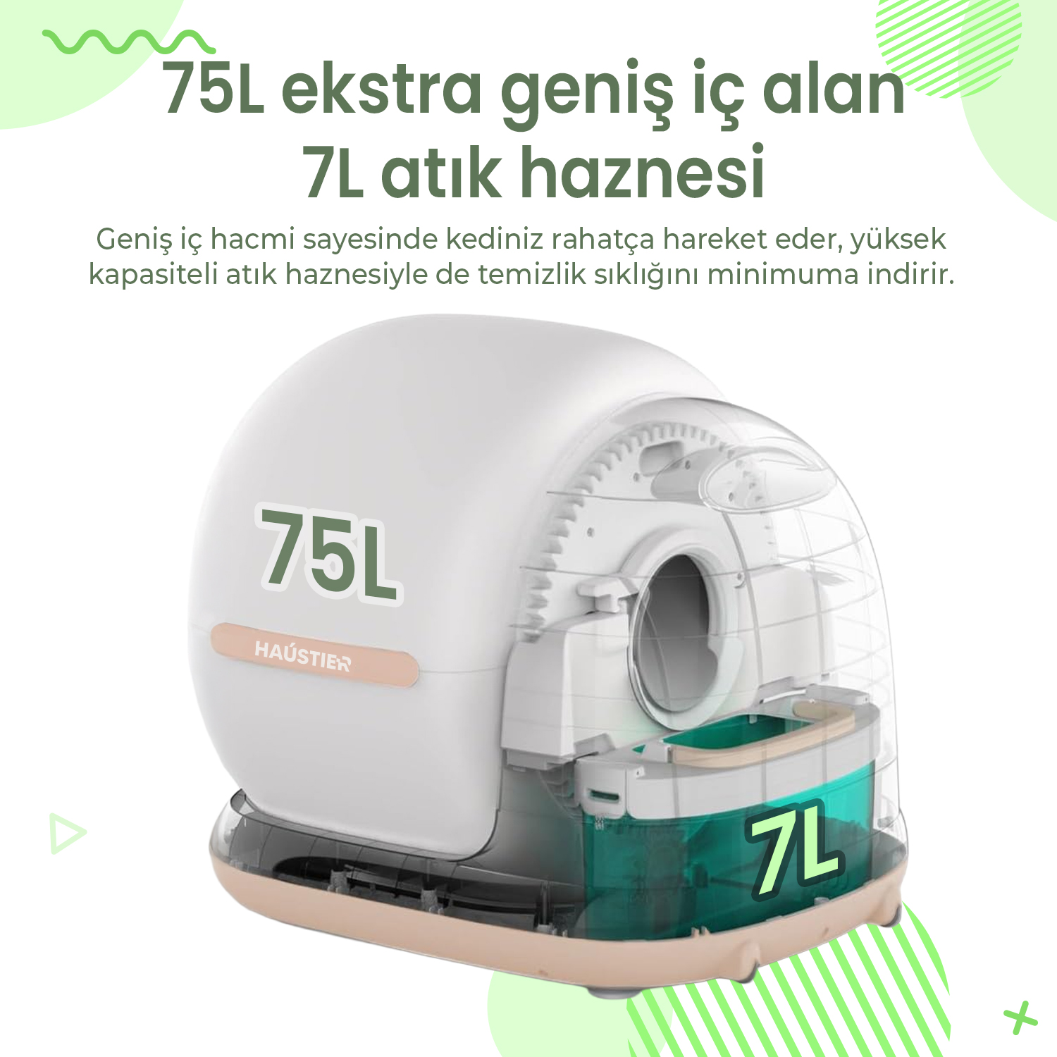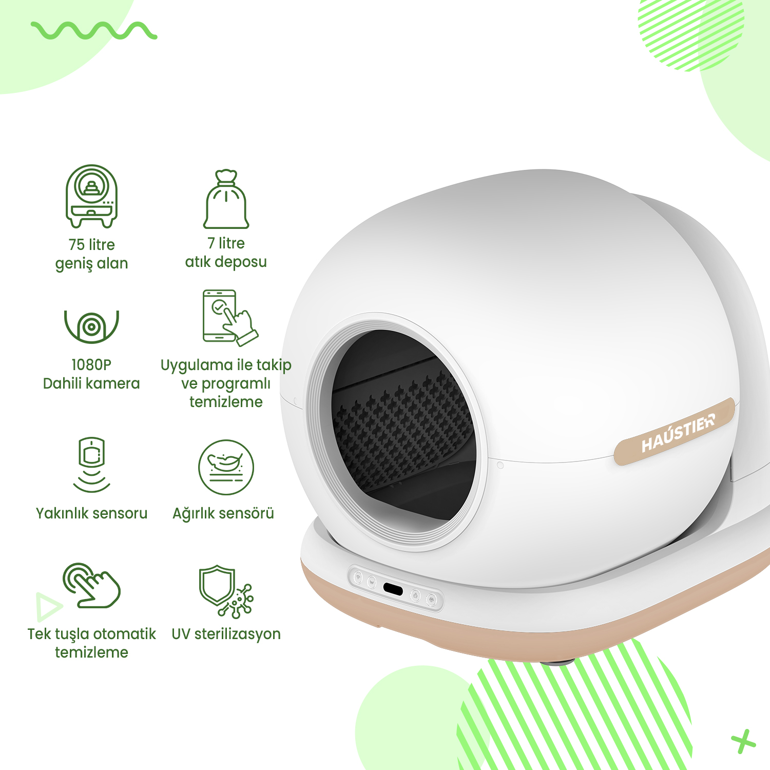 Haustier CB002 Bej Kameralı Kedi Tuvaleti QQ003 Beyaz Mama Kabı WF007L Beyaz Kedi Su Pınarı 3’lü Set (Türkiye Garantili)
