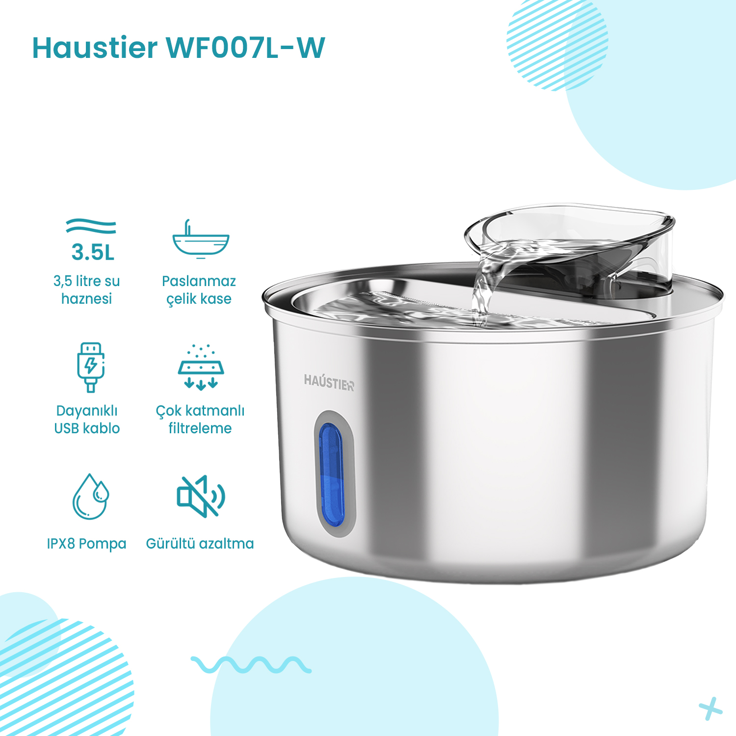 Haustier QQ009DS-WF009L-W Akıllı Mama Kabı,Kedi Su Sebili Paslanmaz Çelik 2 li Konfor Paketi