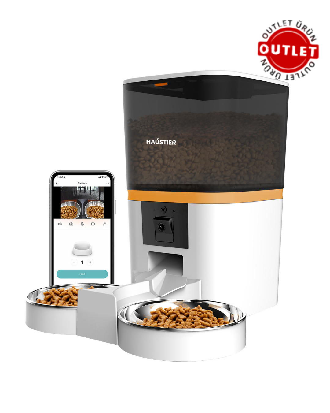 Haustier QQ009 Beyaz Dual OUTLET Gece Görüşlü 1080P FHD kameralı Mama Kabı