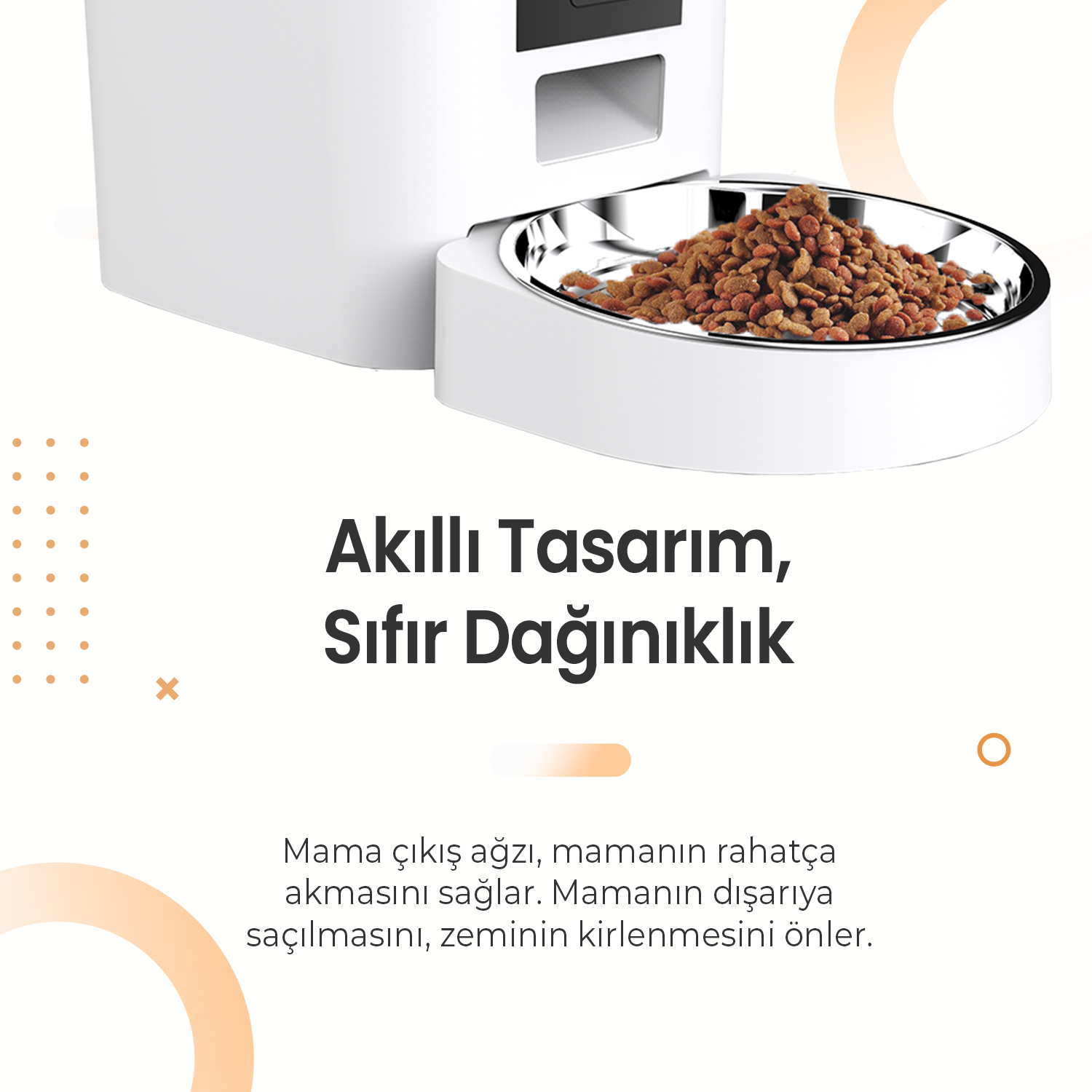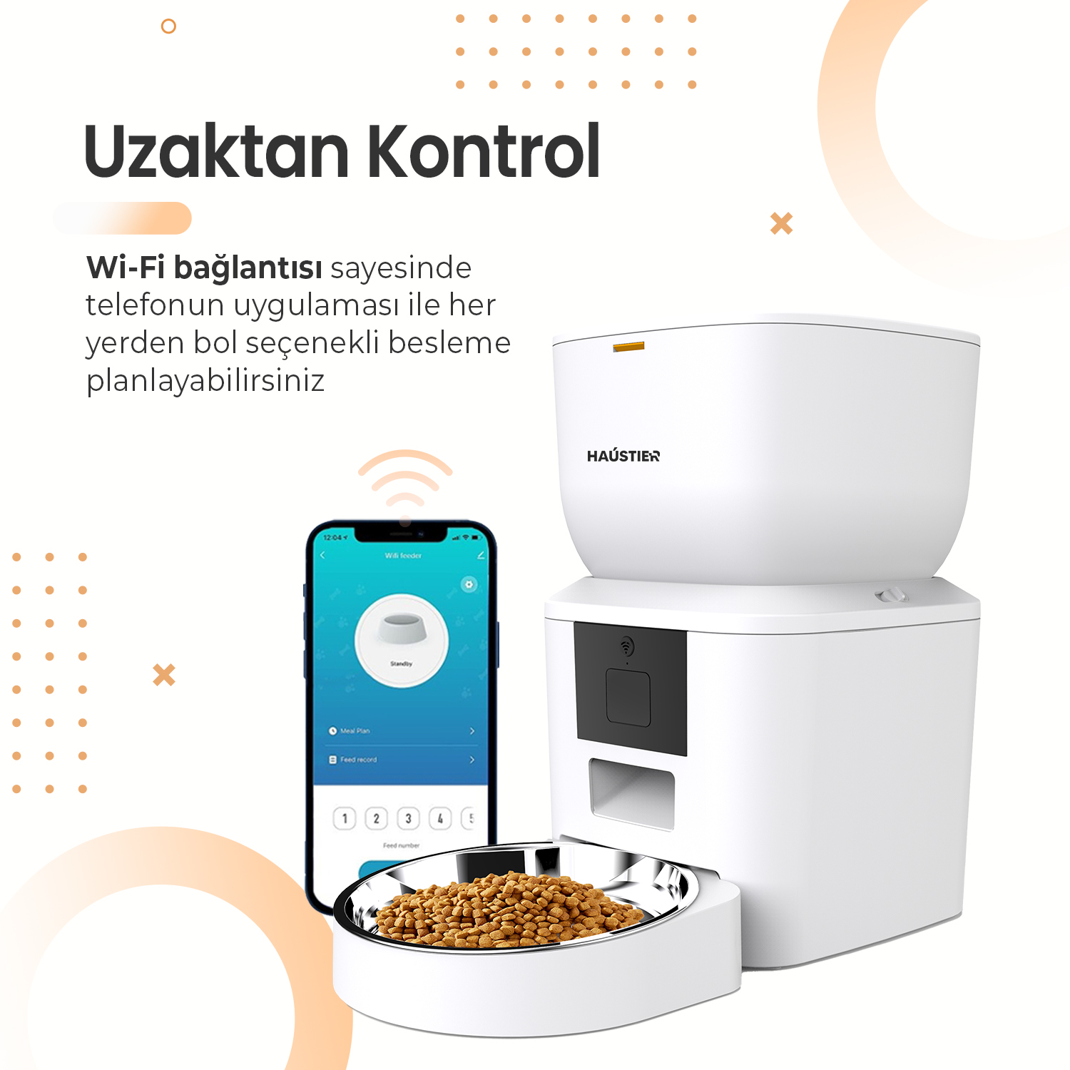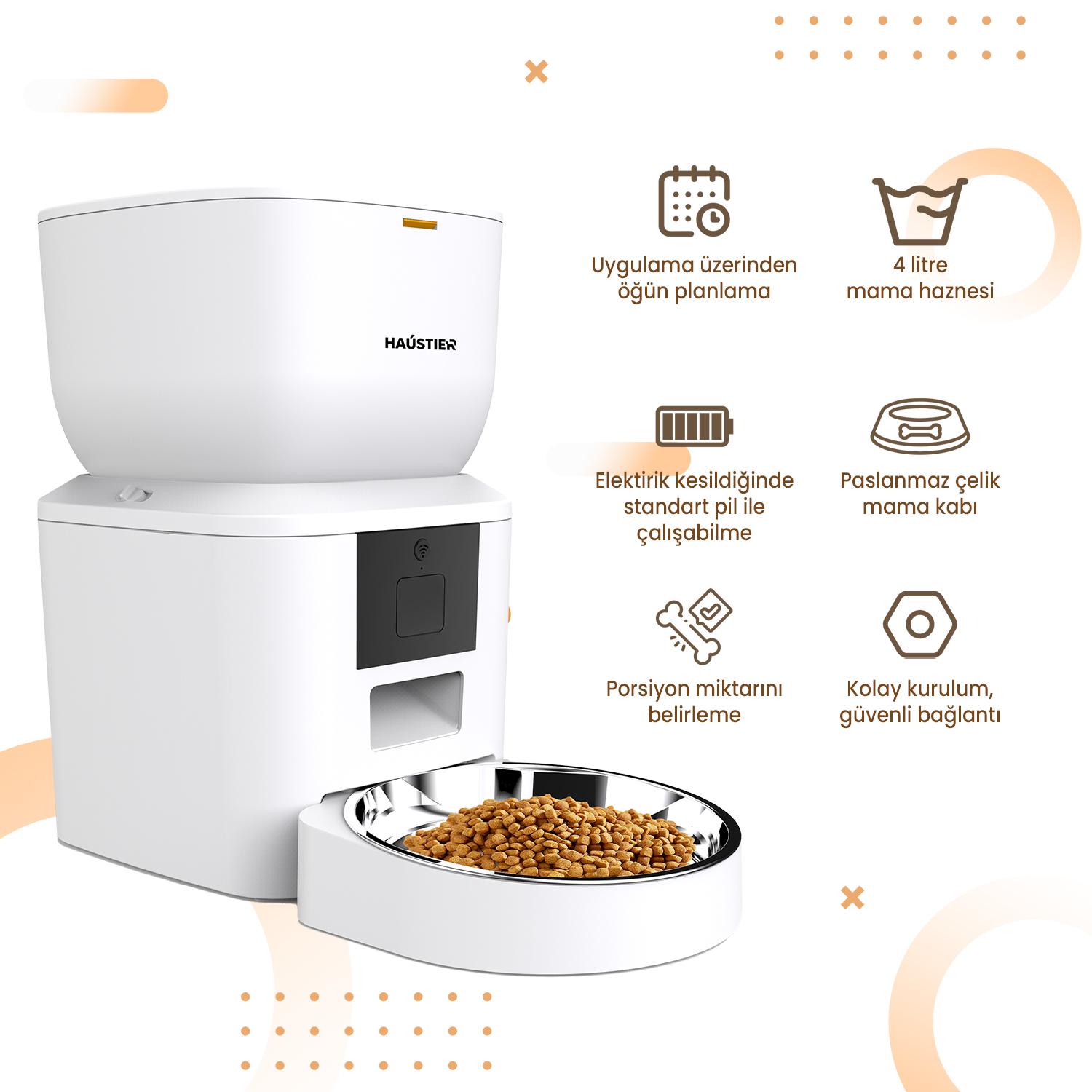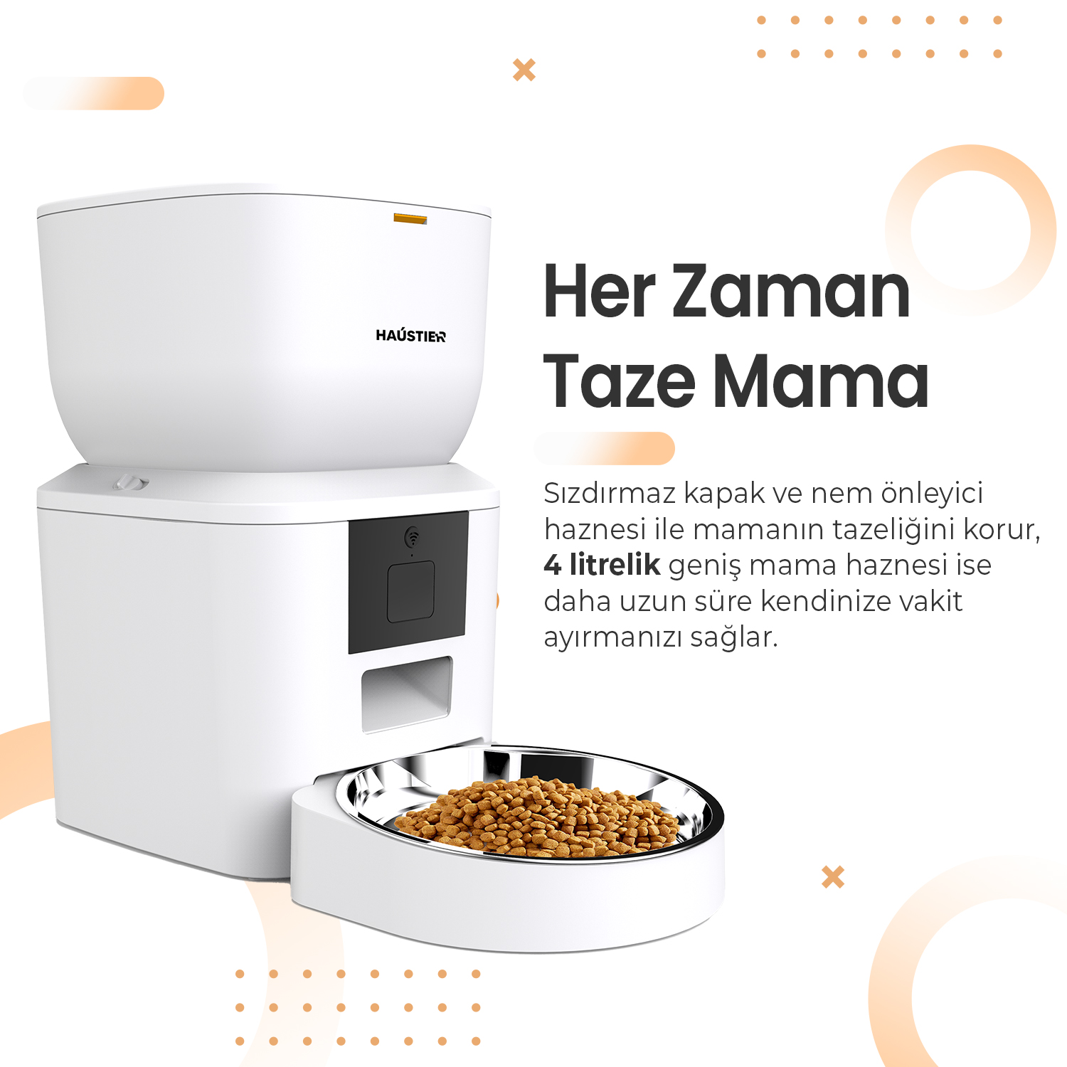 Haustier QQ023 Beyaz Akıllı Kedi Köpek Mama Kabı, Tuya App-Wifi Uzaktan Kontrol, 4lt Hazne, Metal Kase