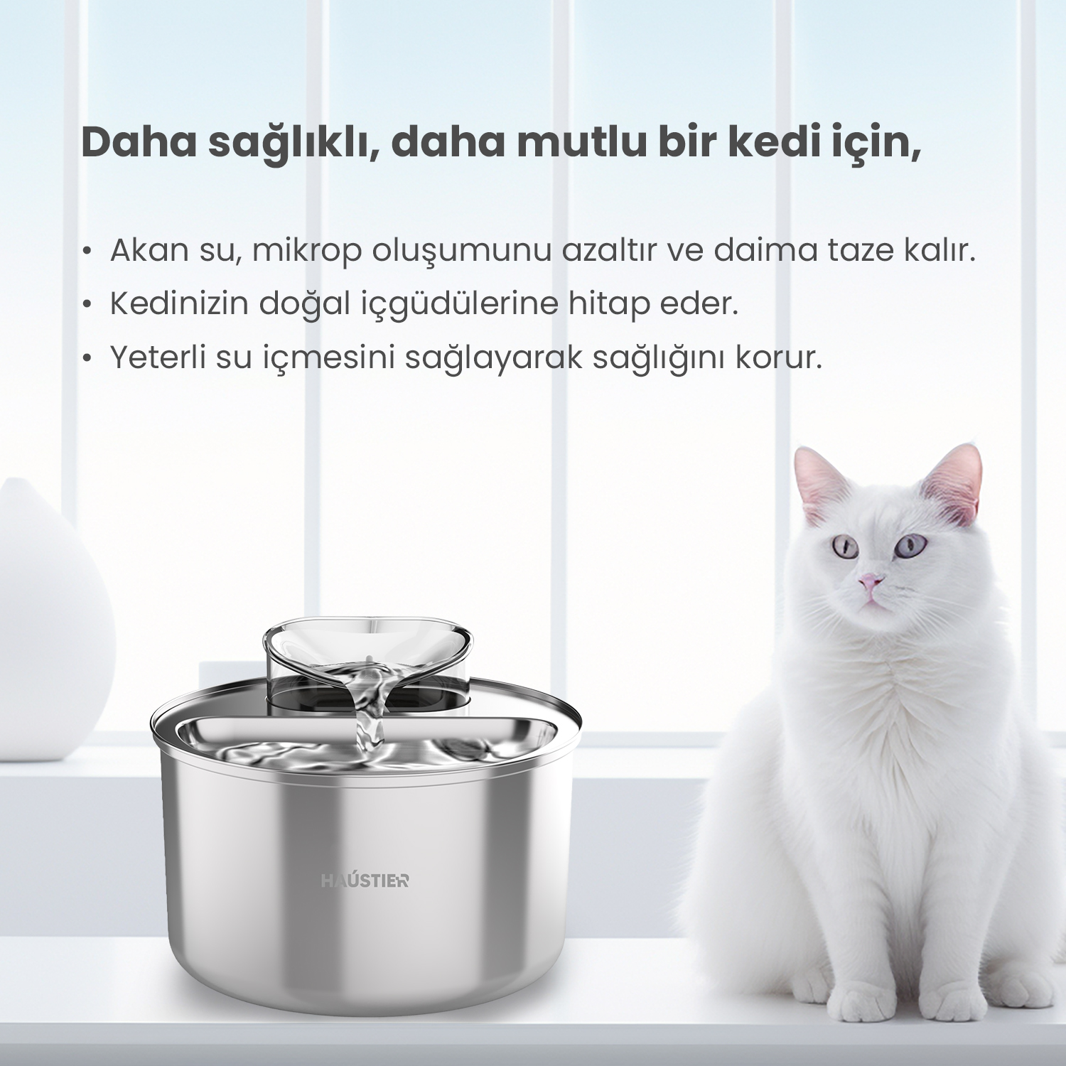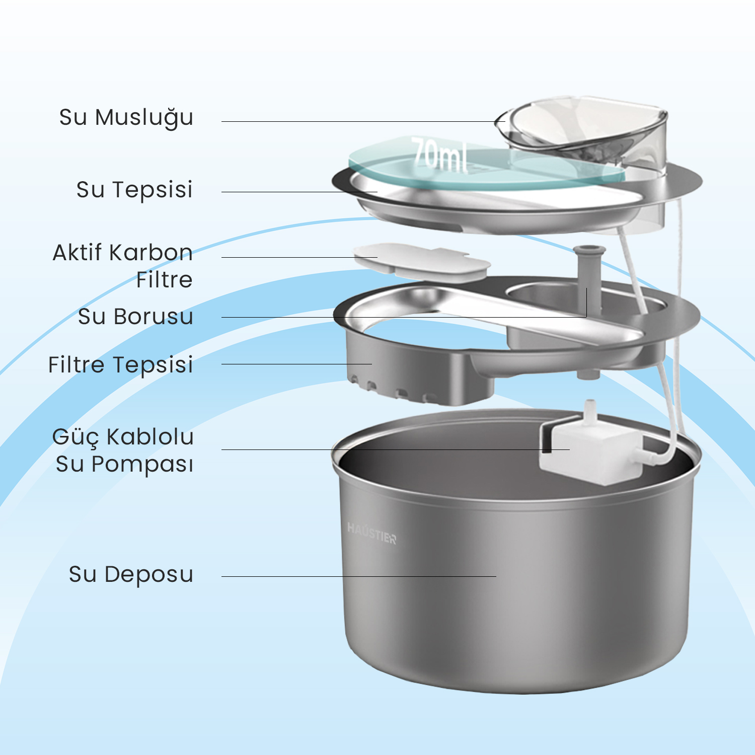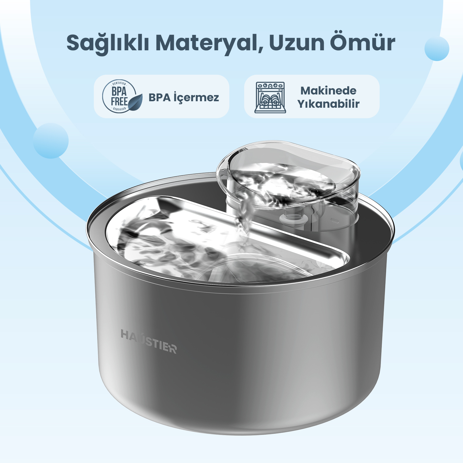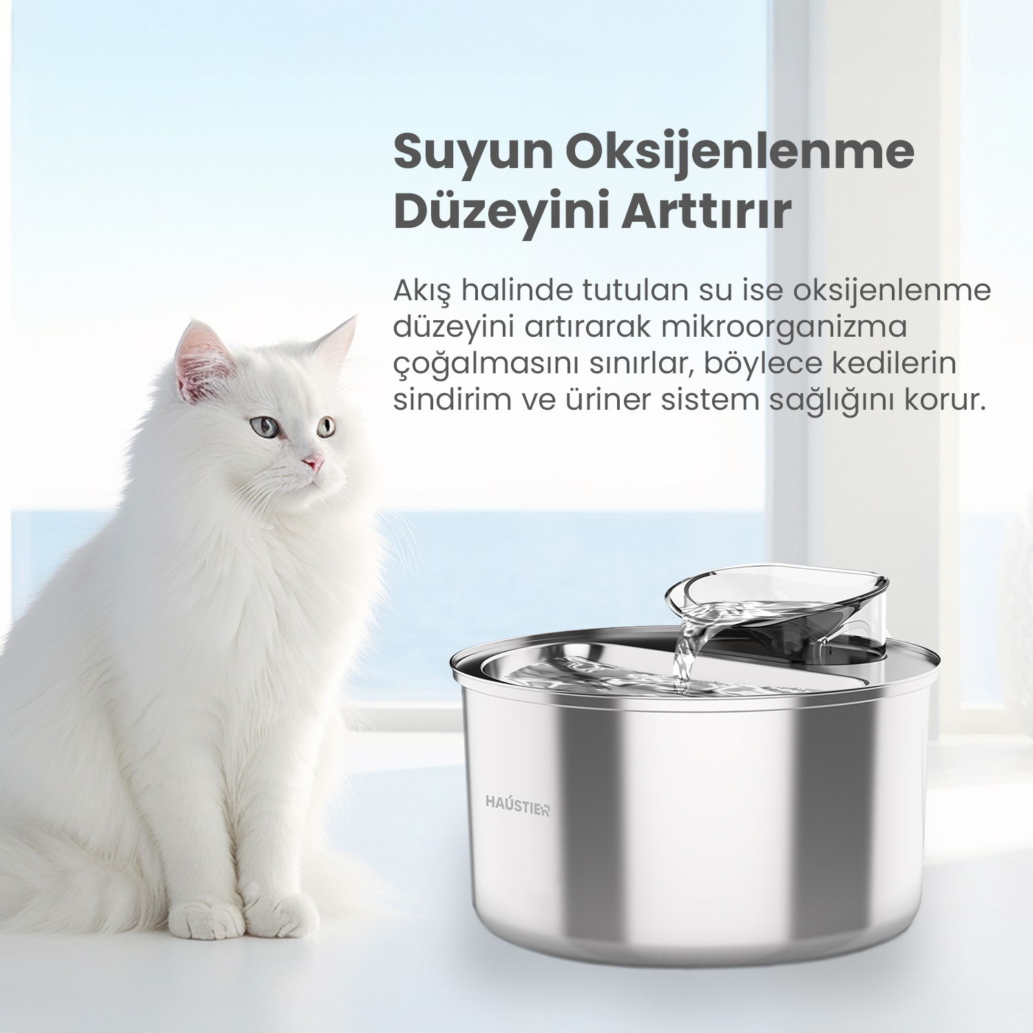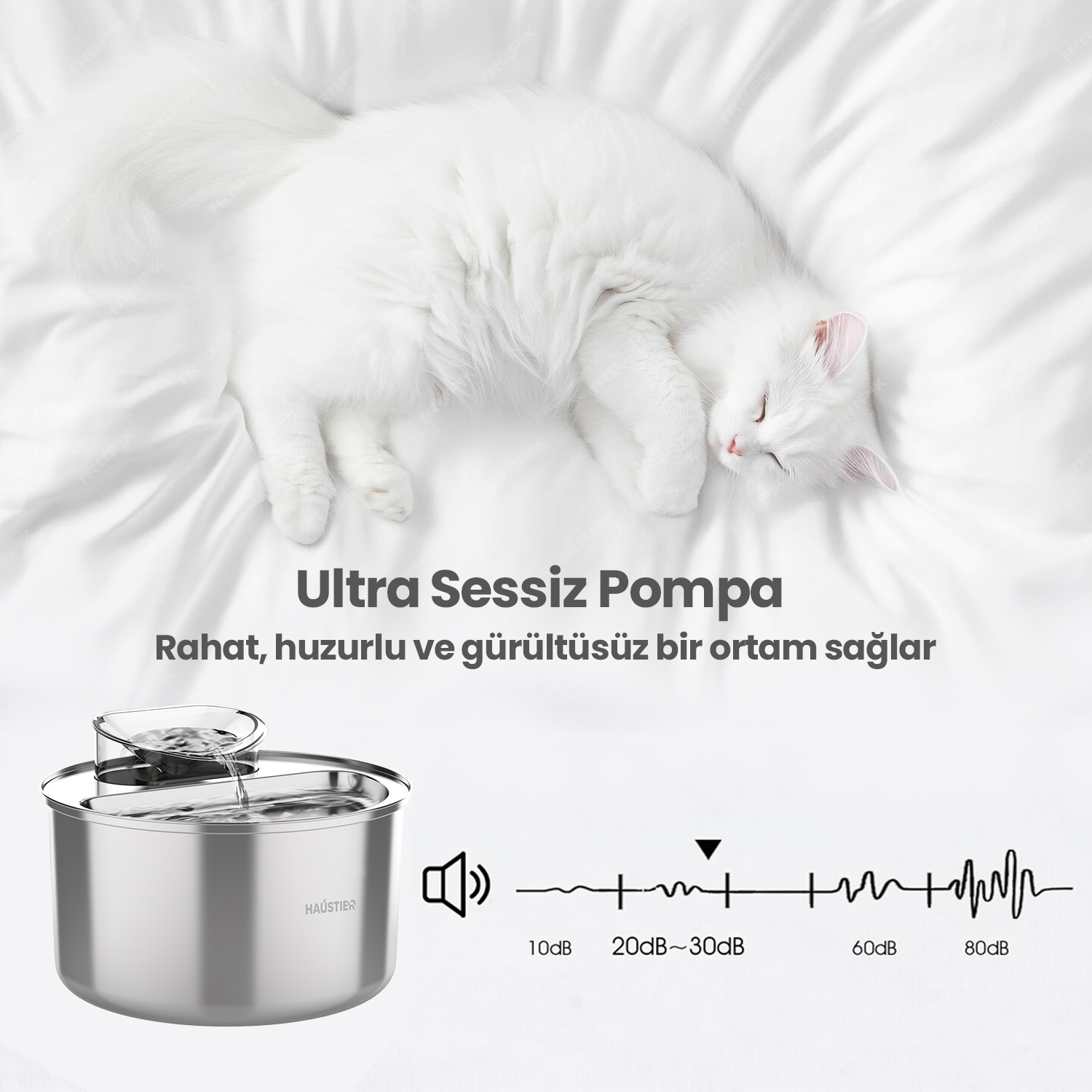 Haustier WF009L Metal Tasarım Otomatik Kedi Su Sebili, Kedi Su Çeşmesi, Su Pınarı 3.5Lt Geniş Hazne, SUS304 Çelik, Ultra Sessiz, Çok Katmanlı Filtrasyon