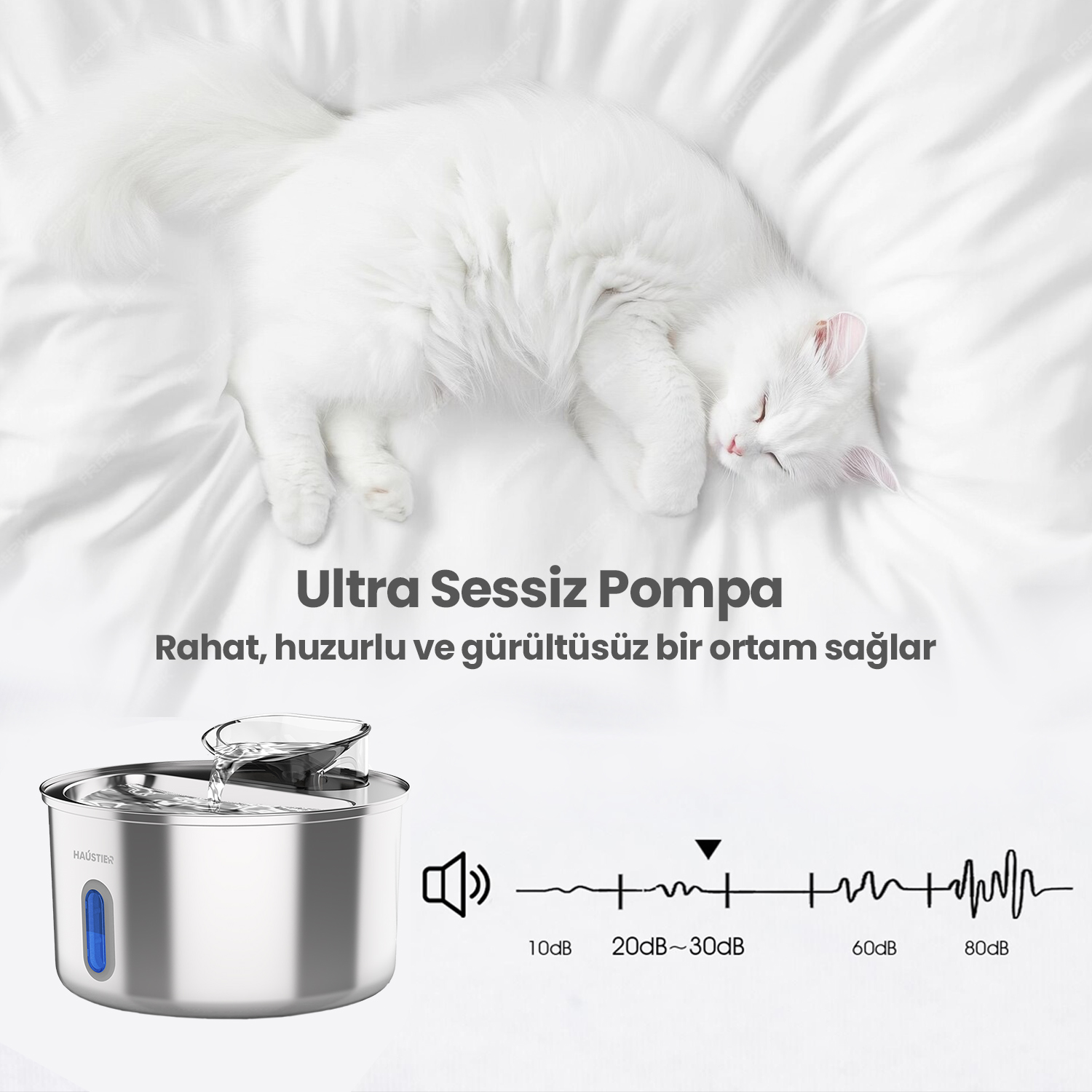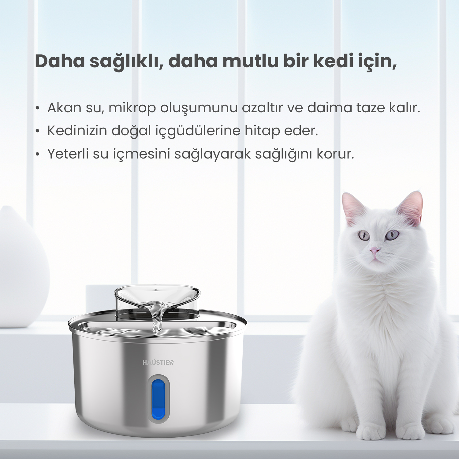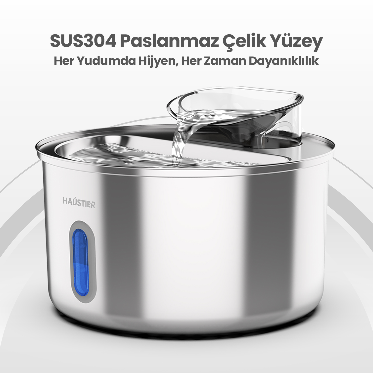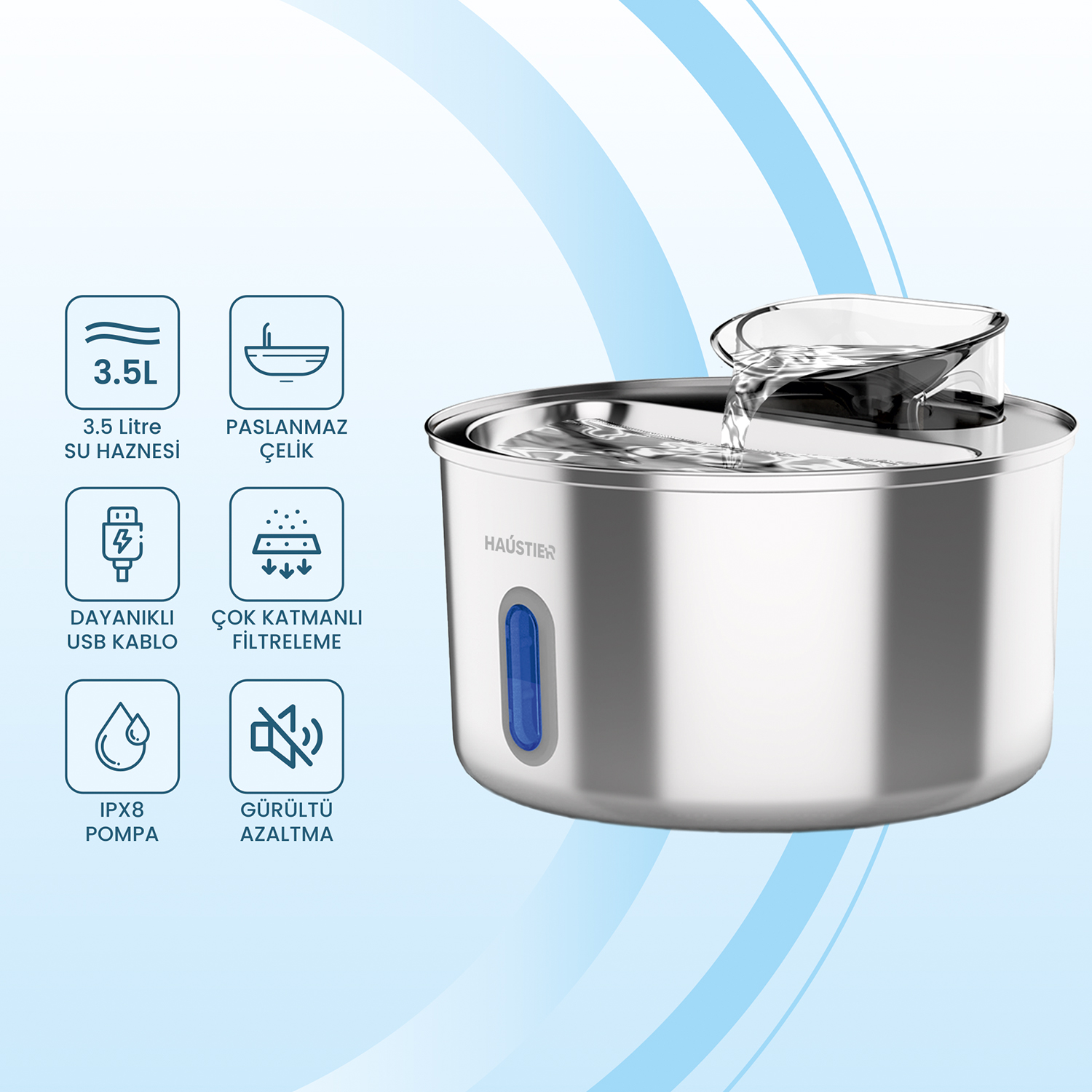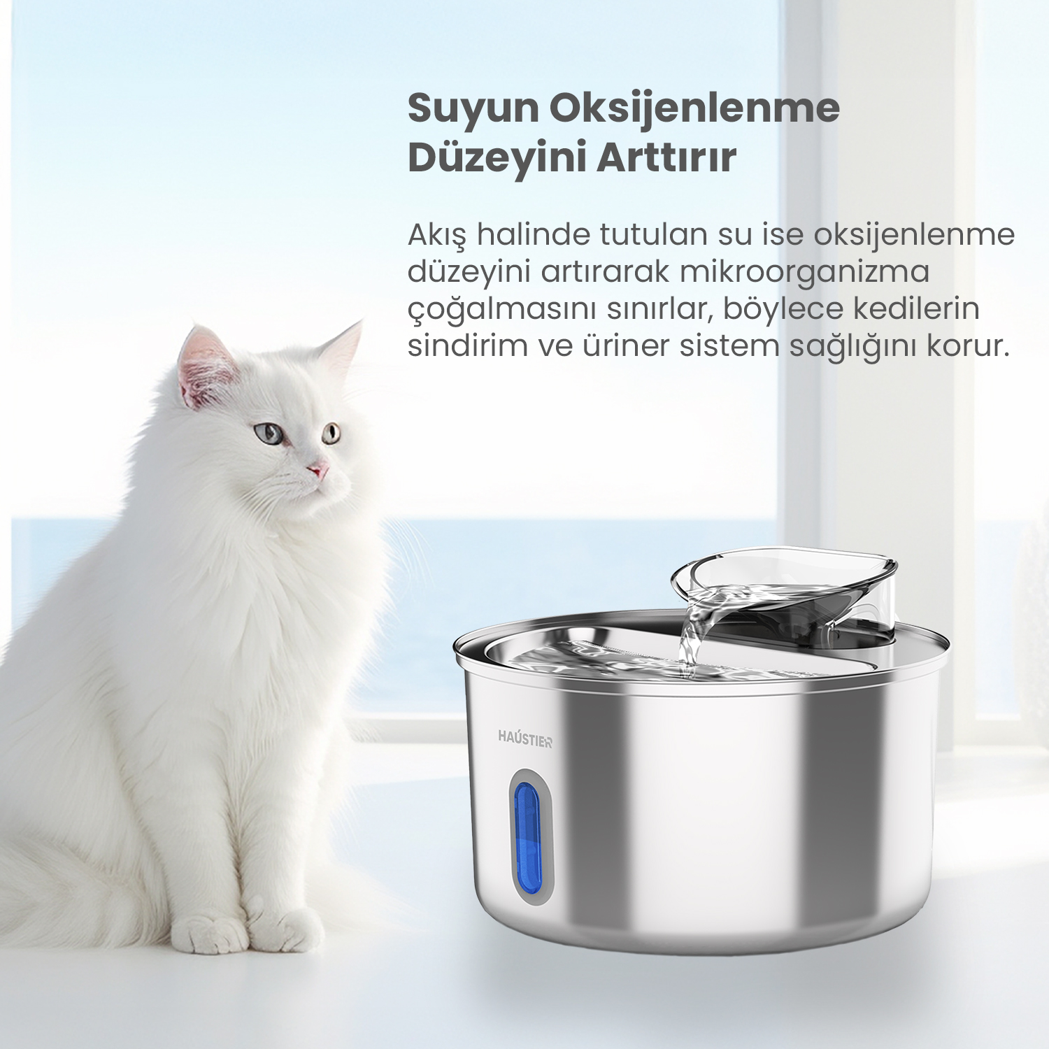 Haustier WF009L-W Metal Tasarım Pencereli Otomatik Kedi Su Sebili,Kedi Su Çeşmesi, Su Pınarı 3.5Lt Geniş Hazne, SUS304 Çelik, Ultra Sessiz, Çok Katmanlı Filtrasyon