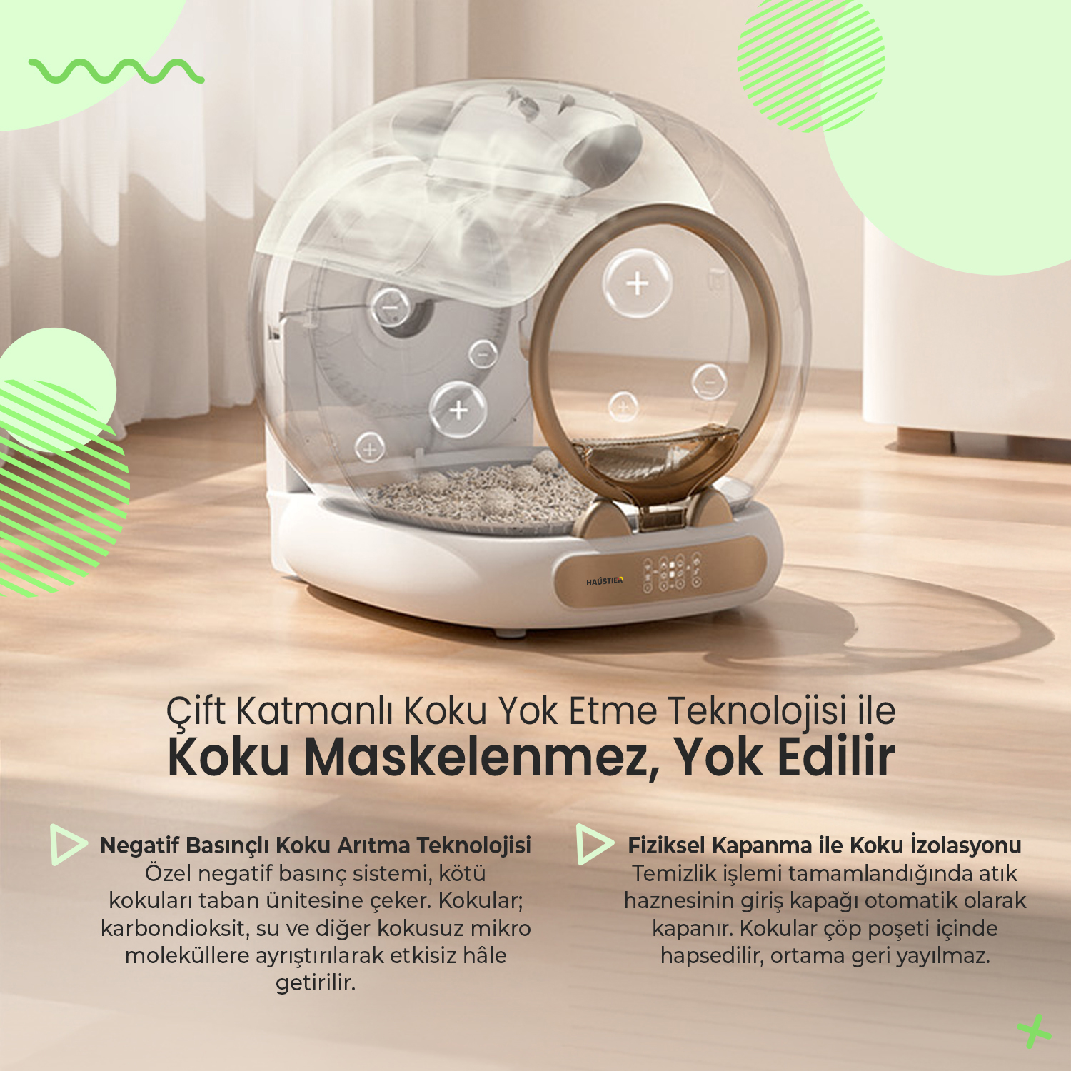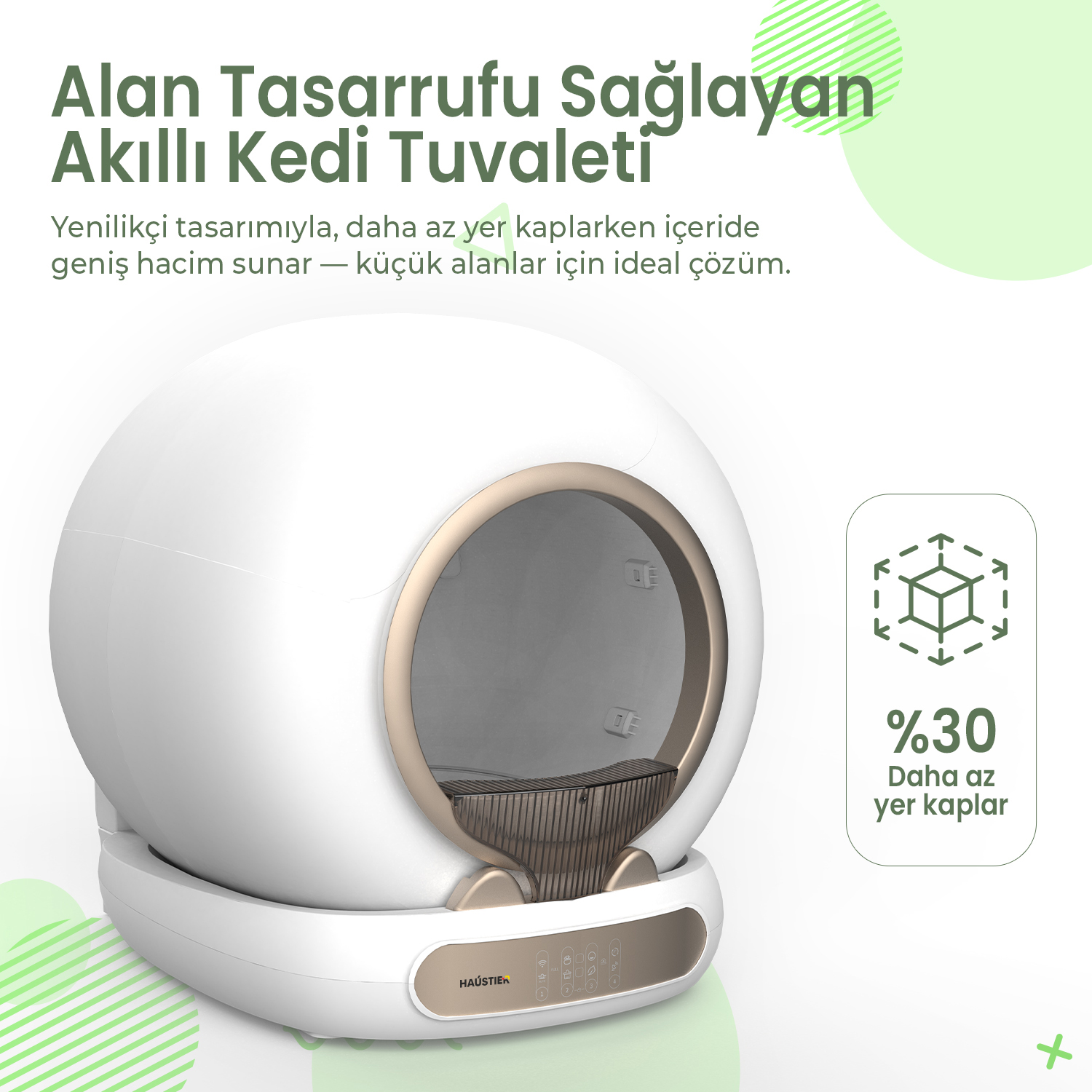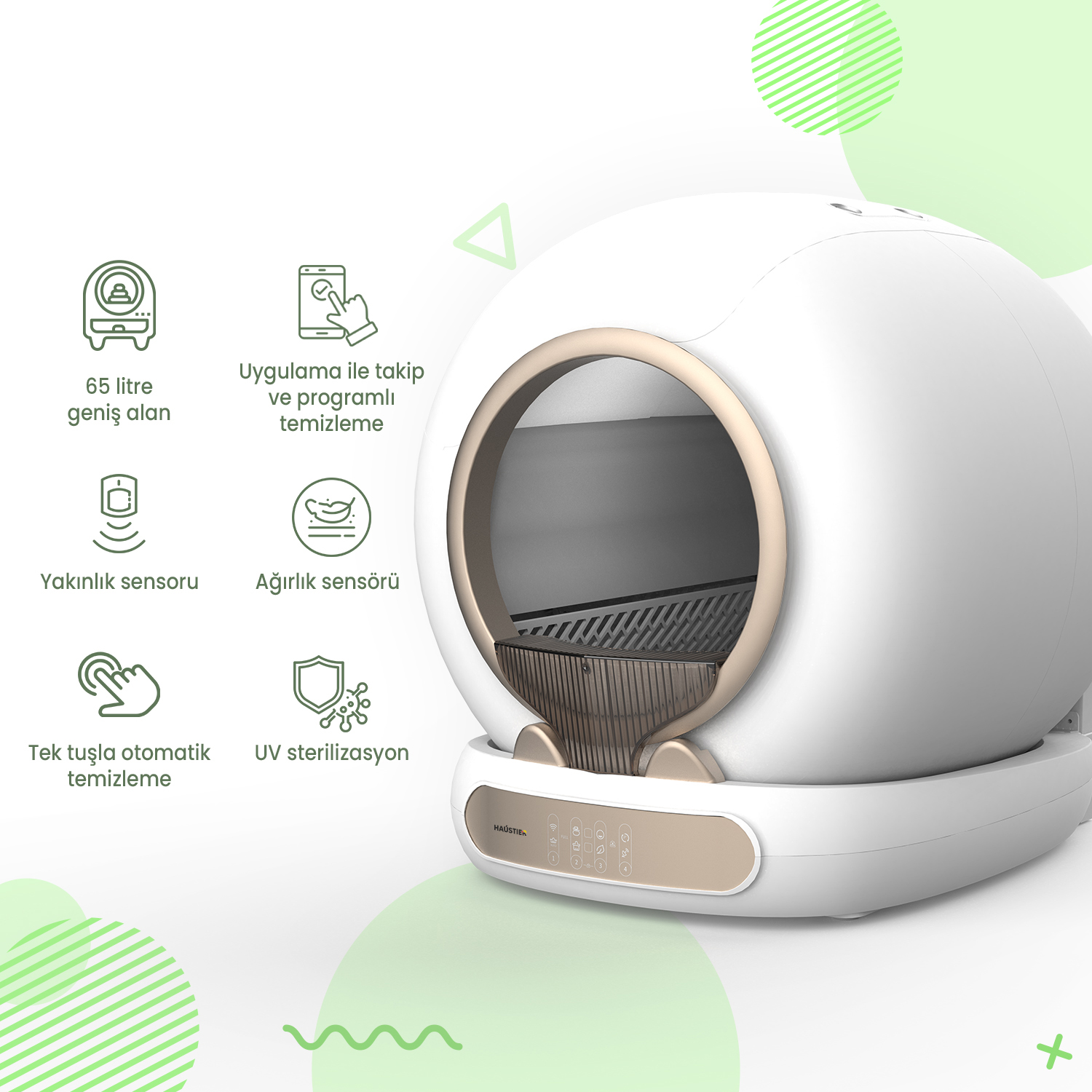 Haustier MSP05 Akıllı Otomatik Kedi Tuvaleti, APP ile Uzaktan Kontrol, 65lt Hazne, UV Sterilazyon, Ağırlık sensörlü