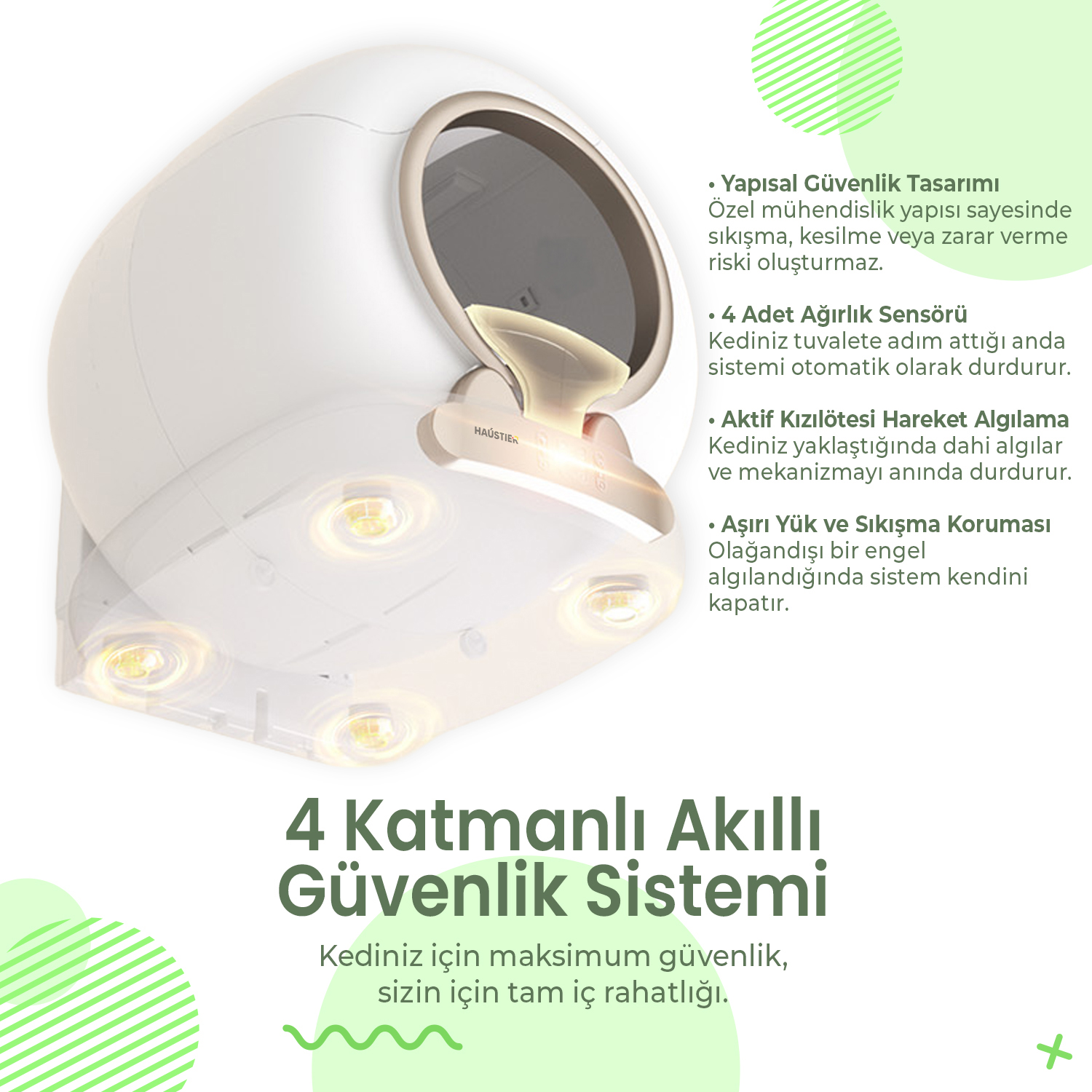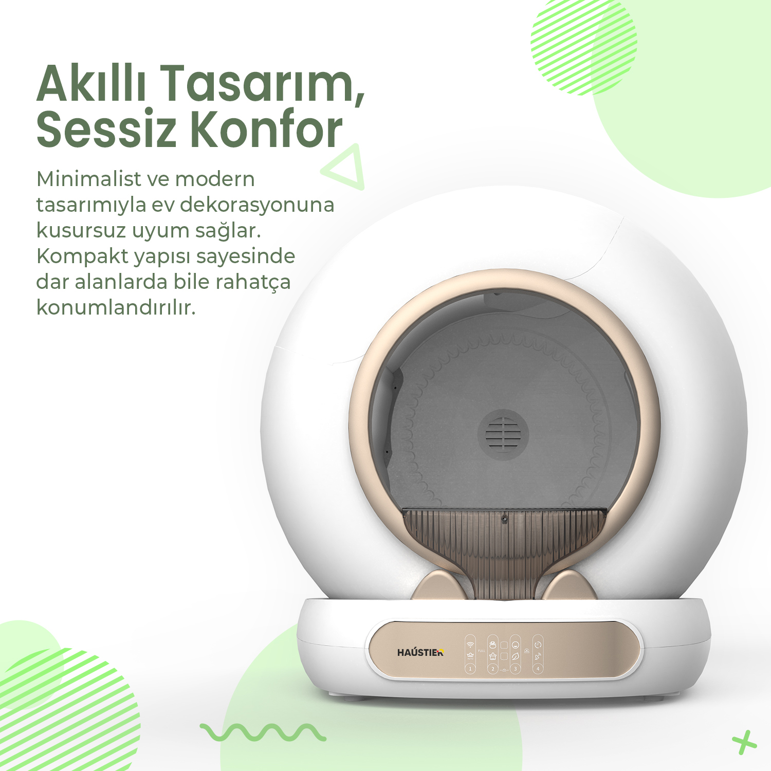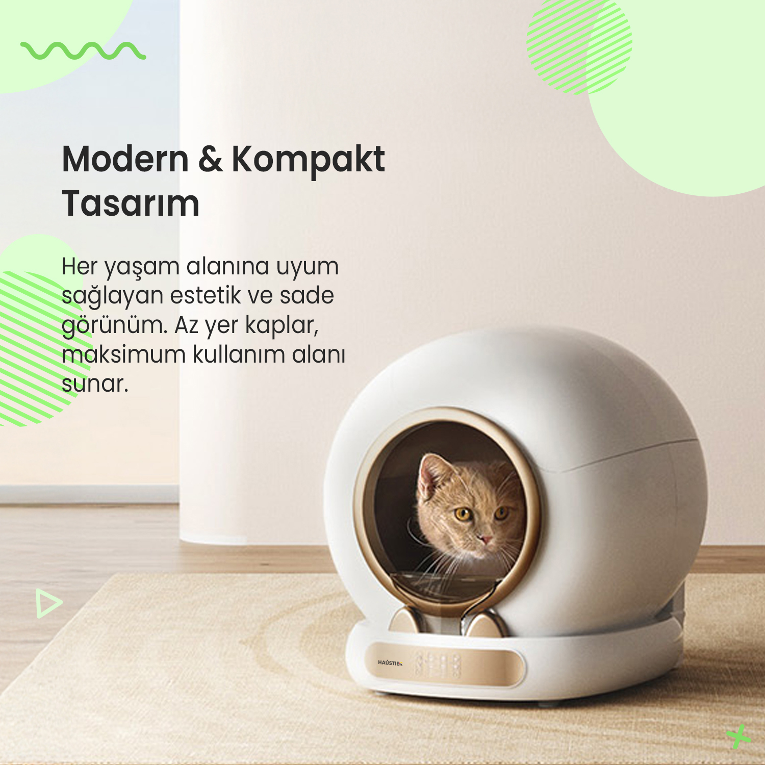 Haustier MSP05 Akıllı Otomatik Kedi Tuvaleti, APP ile Uzaktan Kontrol, 65lt Hazne, UV Sterilazyon, Ağırlık sensörlü