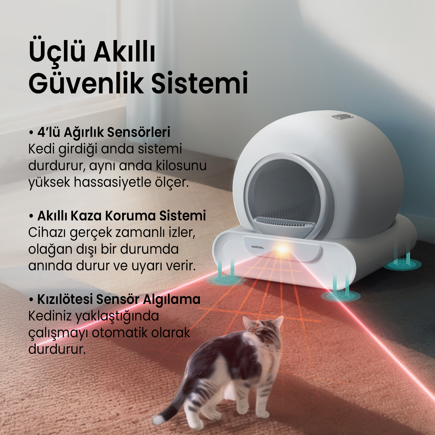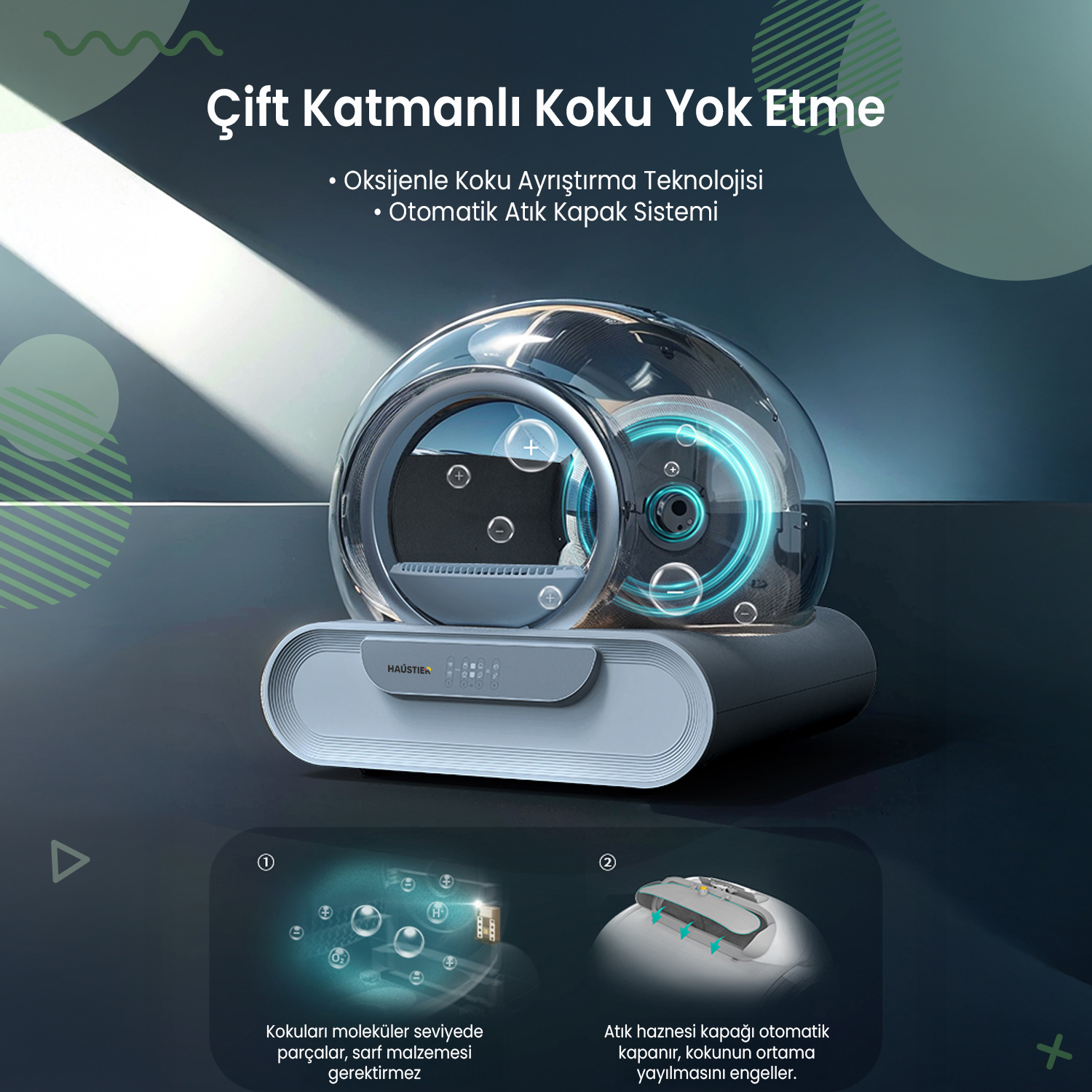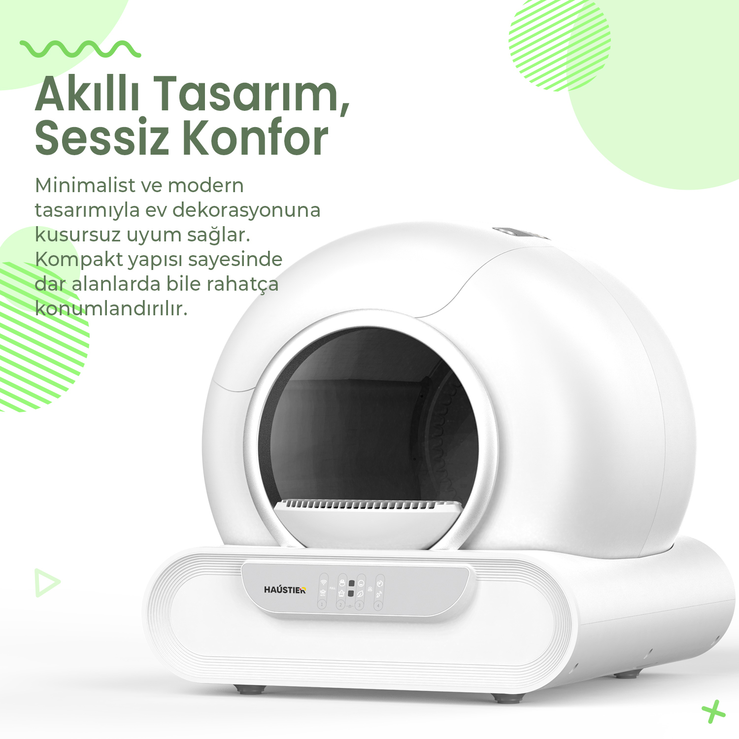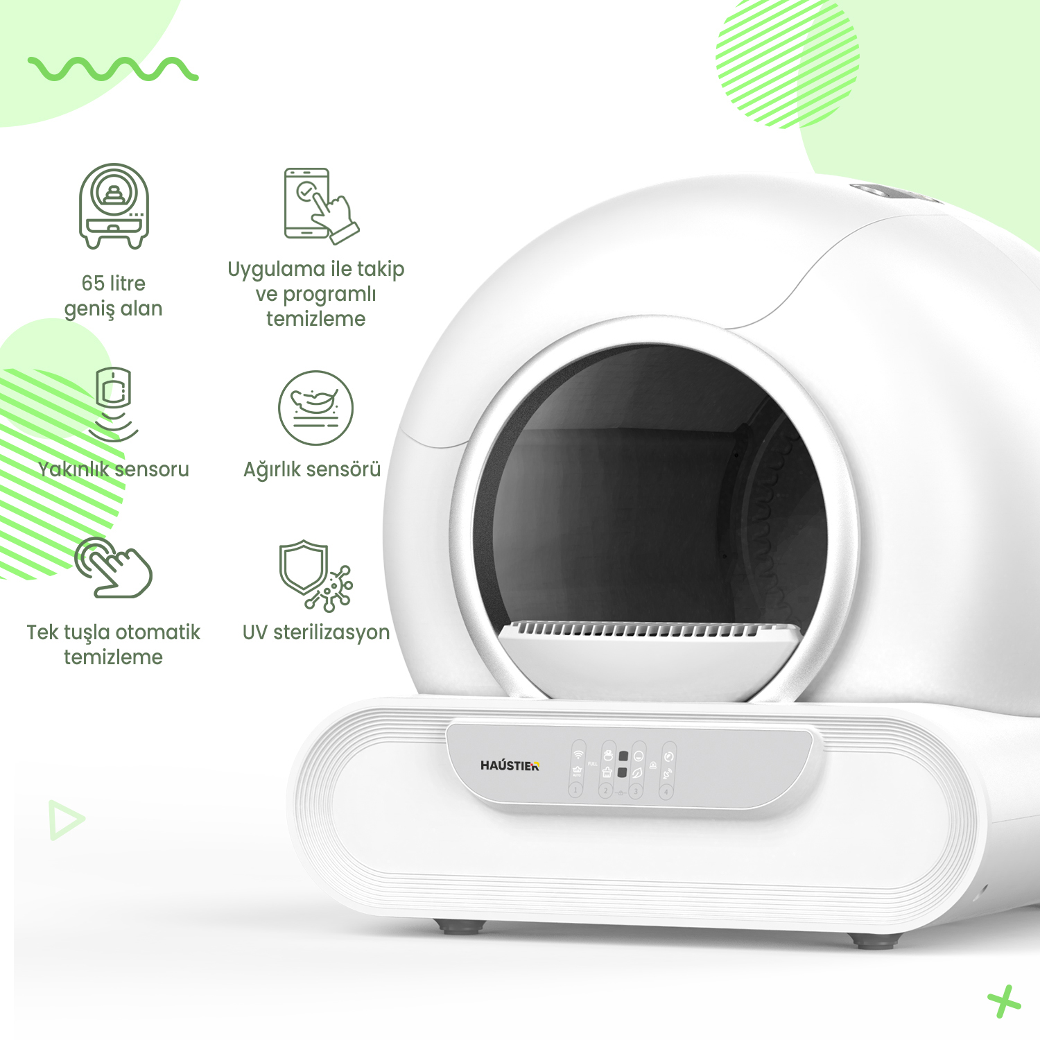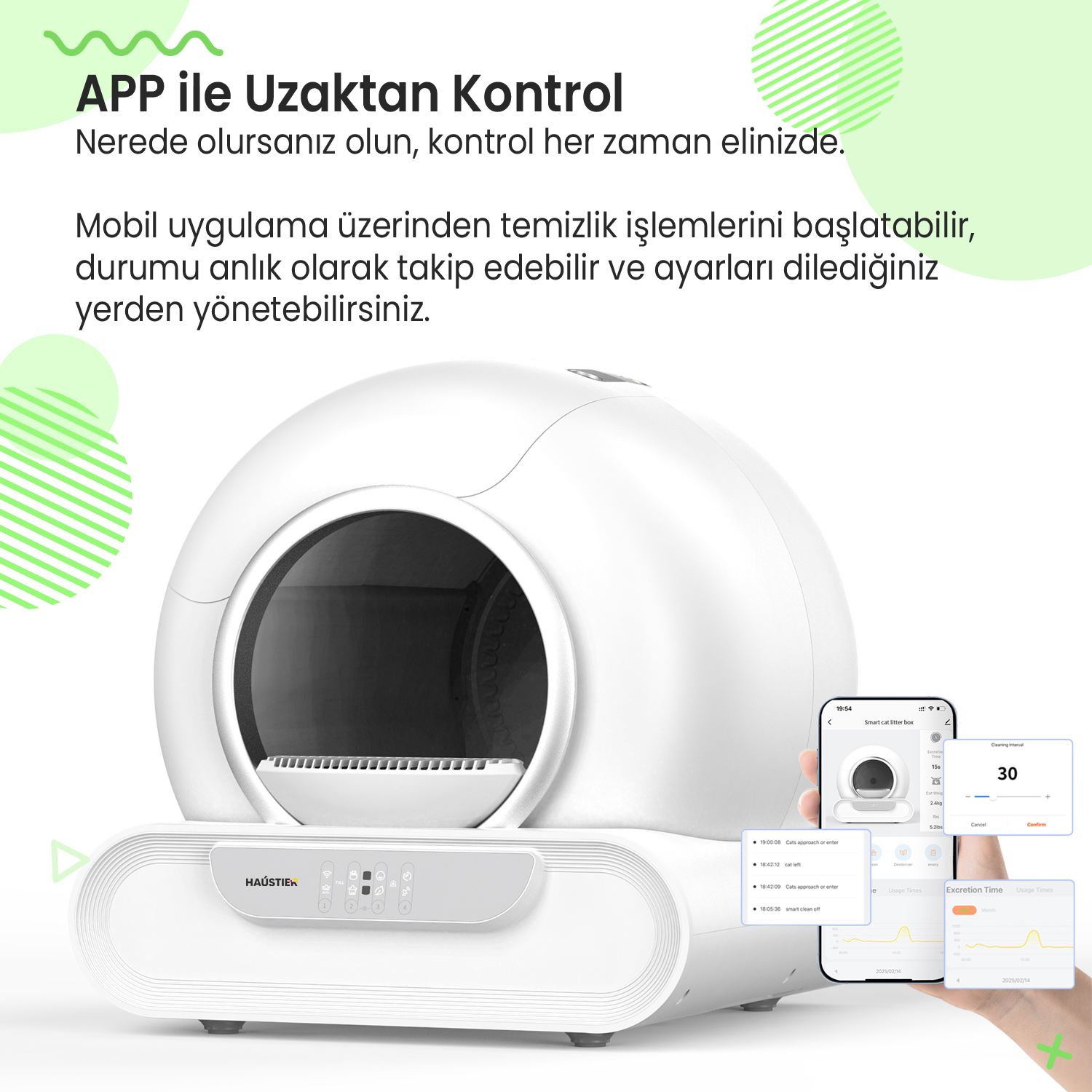 Haustier MSP08 Akıllı Otomatik Kedi Tuvaleti, APP ile Uzaktan Kontrol, 65lt Hazne, UV Sterilazyon, Ağırlık sensörlü